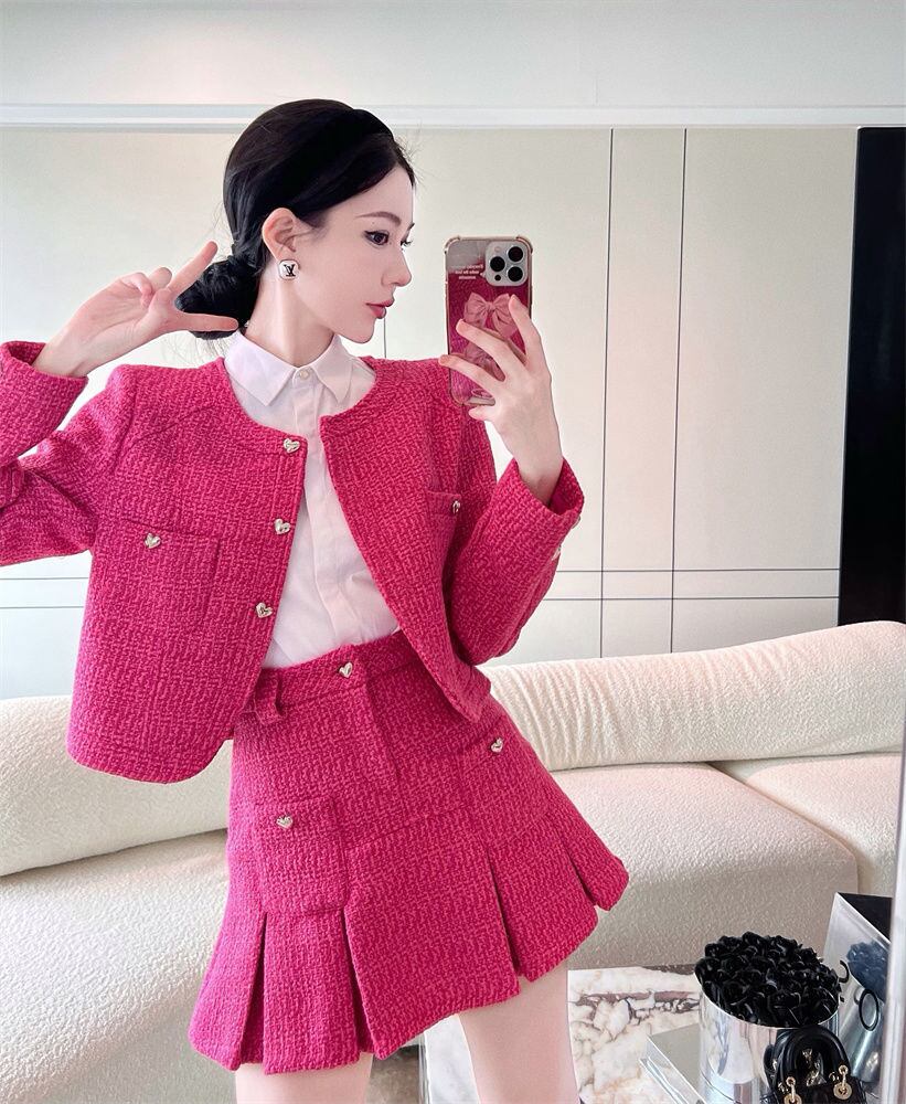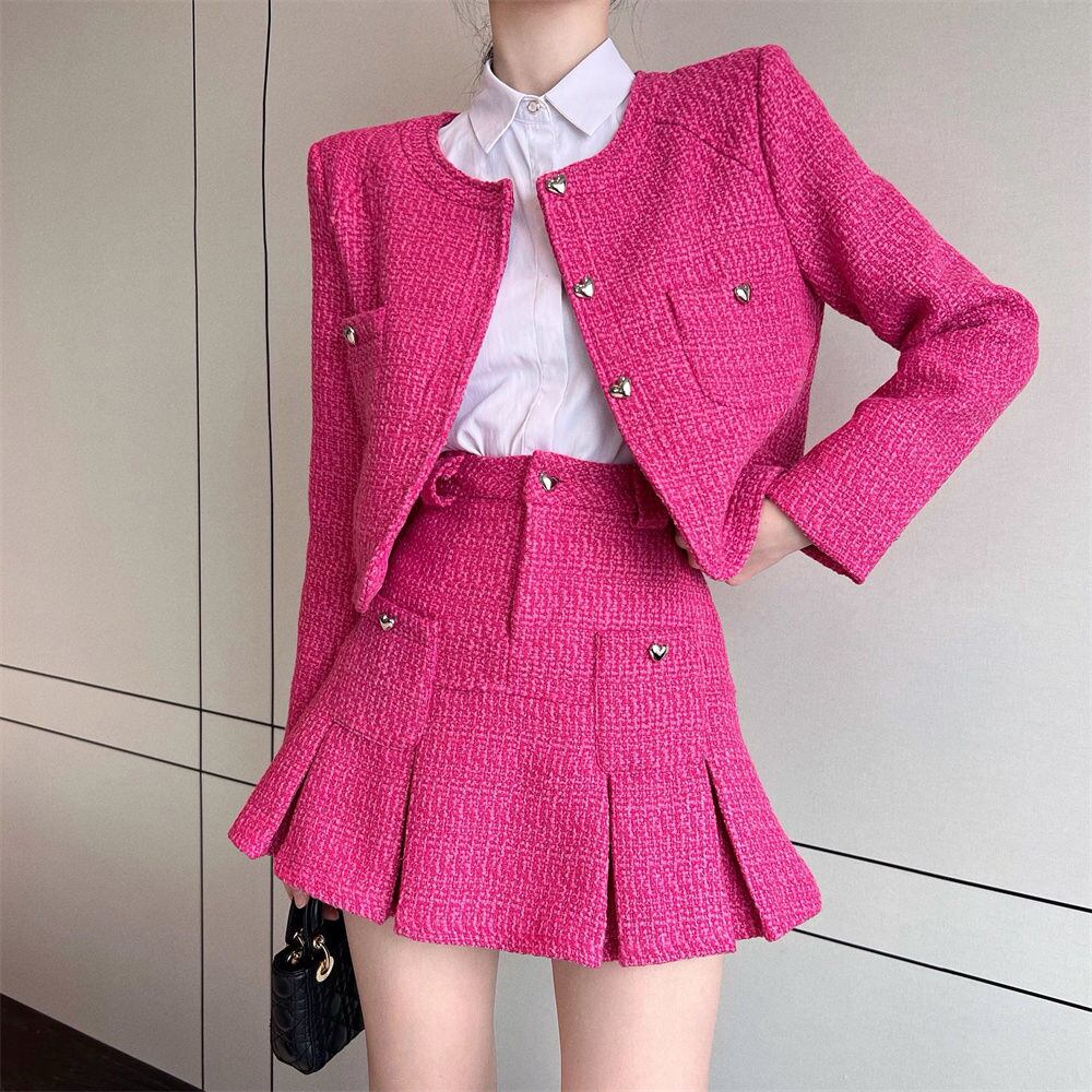 秋冬ツイード 2 点セット レディース衣装クロップ トップ ウール ジャケット コート + ミニ スカート セット甘い conjuntos feminino エレガンテ 大人ガーリー スウィート キュート カジュアル エレガント ウィンター 冬物 mes66217178749