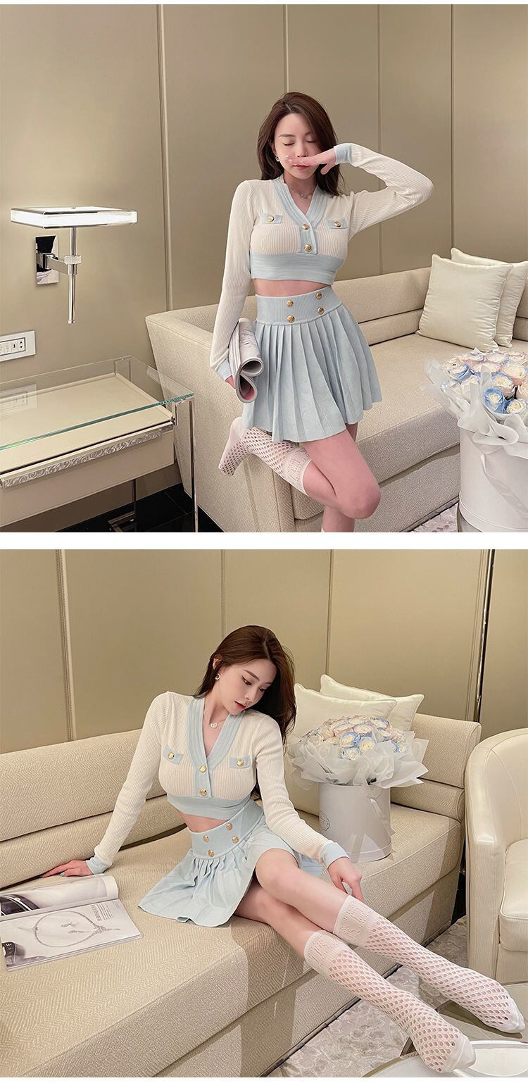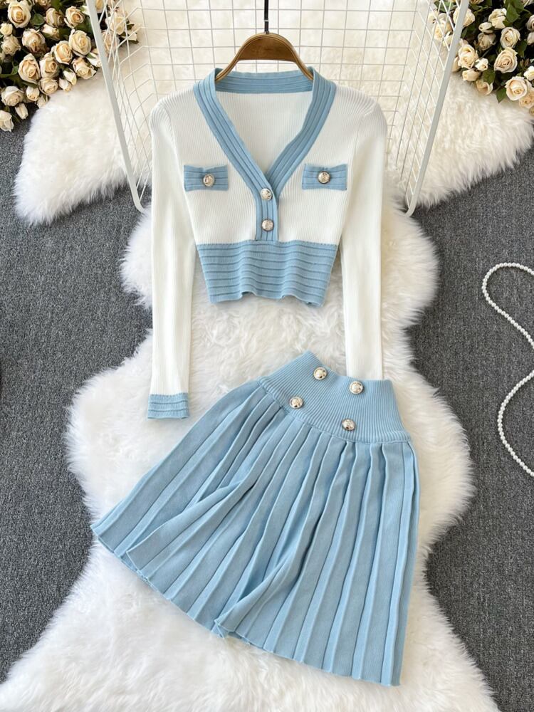 秋セーター女性ニット クロップ トップ ミニ スカート 2 点セット レディース衣装アンサンブル ファム プル ファム オータム 秋物 フェミニン mes80234921125