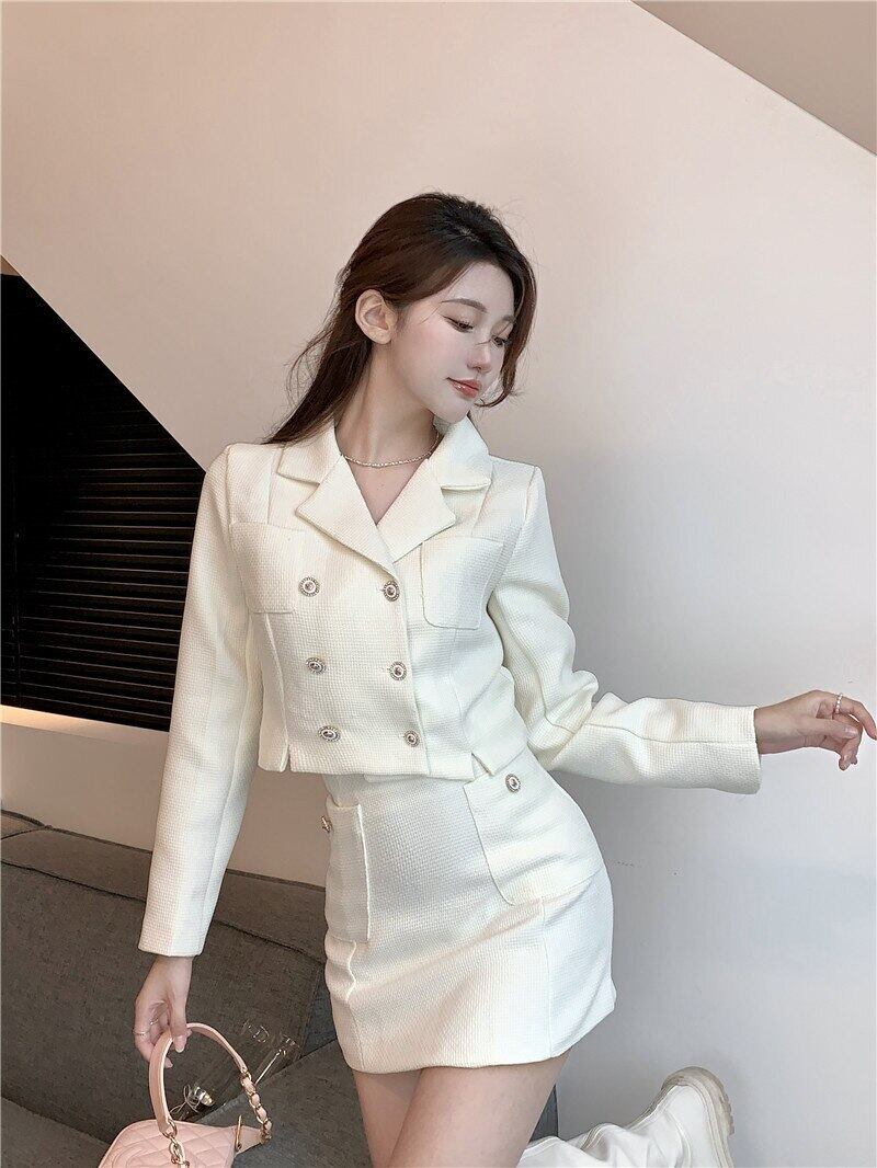 秋の小さな香り 2 点セット女性衣装ショート ジャケット コート + ミニ スカート スーツ 2 点セット オータム 秋物 mes49736457302