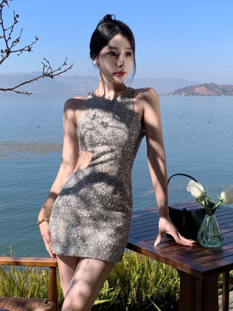 高級スリム パーティー ドレス女性 HotSweet ノースリーブ セクシーなサマー ドレス ローブ 大人ガーリー スウィート キュート カジュアル 夏物 mes25074757062