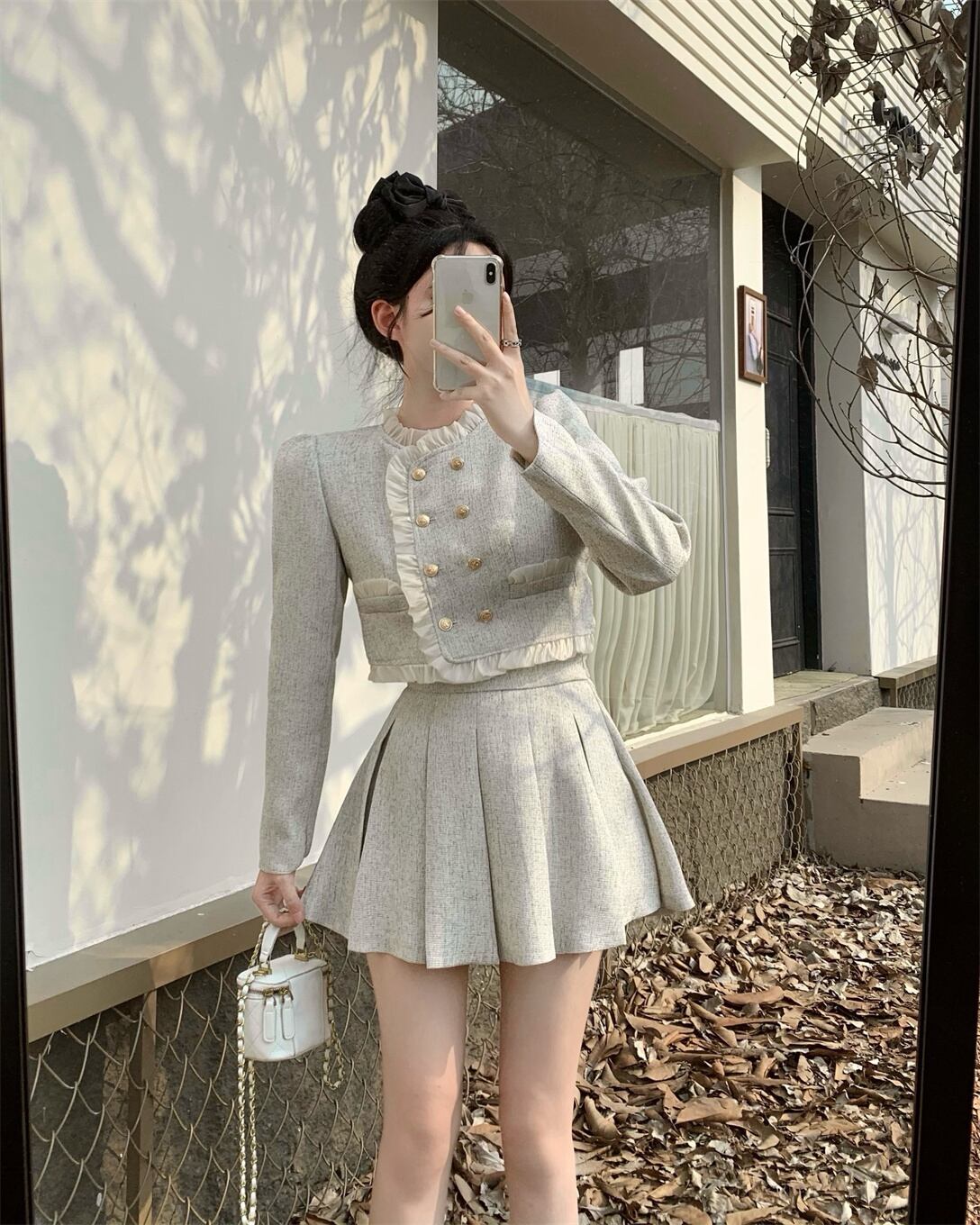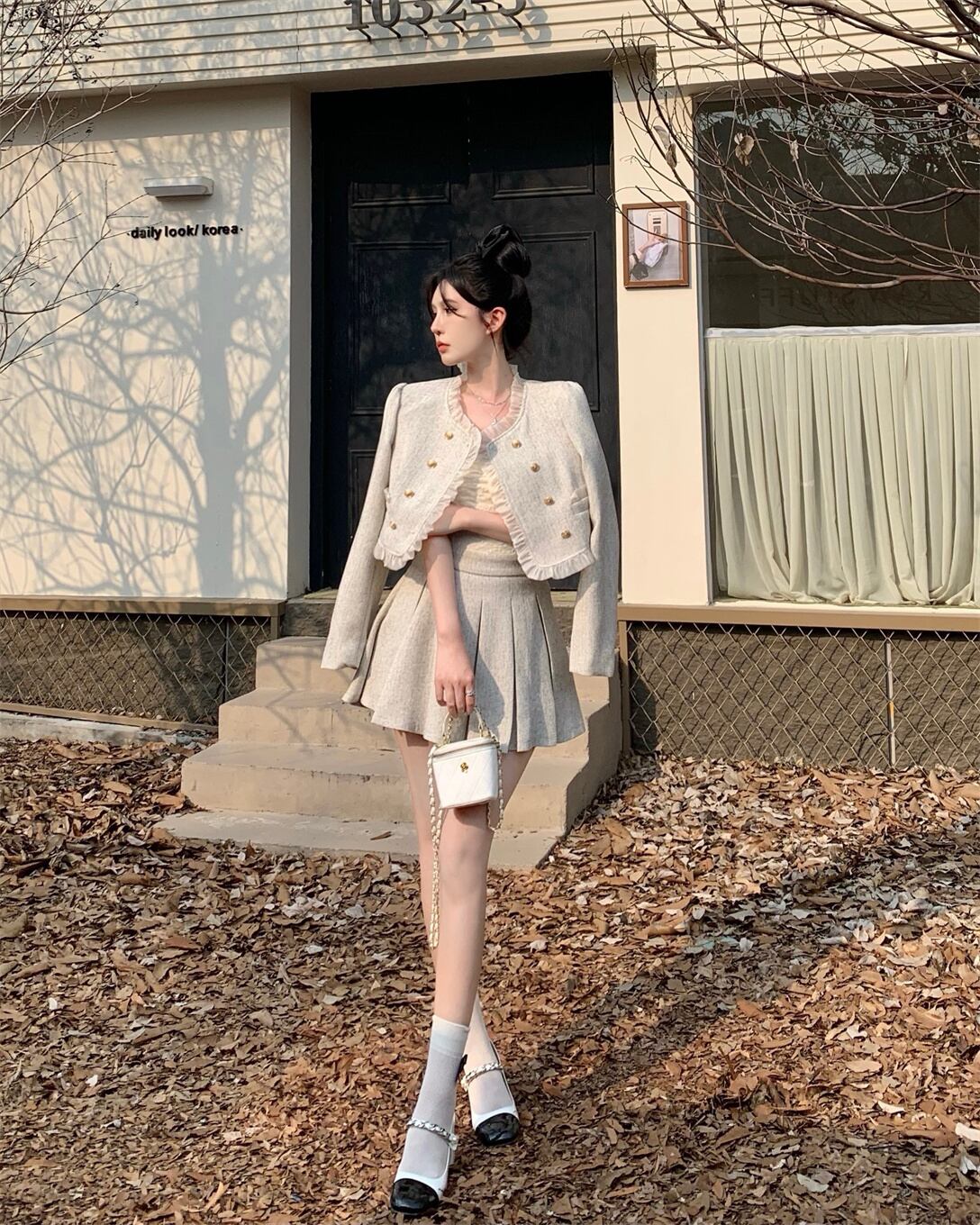 フレンチスモールフレグランスツーピースセットレディースショートジャケットコート+プリーツスカートセットスウィート2ピーススーツ 大人ガーリー キュート カジュアル mes94086168025