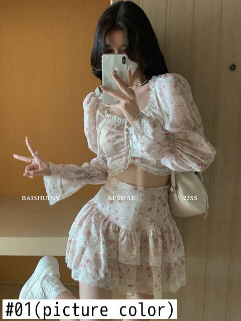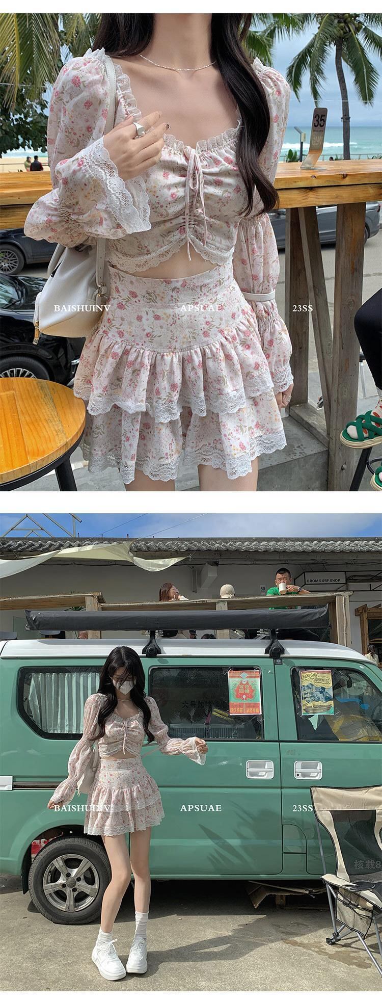 スウィートガールプリントツーピースセット女性のセクシーなクロップトップ & スカートセット休暇ビーチ 2 ピーススーツ夏セットレディース衣装 大人ガーリー キュート カジュアル サマー 夏物 mes91517081629