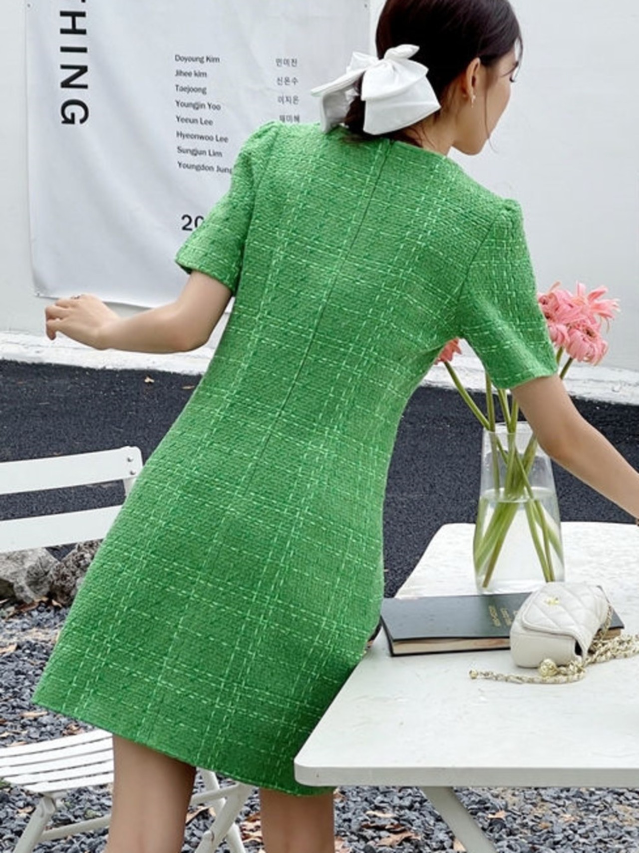 フランスの小さな香りのツイードドレスの女性の緑のパーティードレスパーティー Vestidos グリーン mes32136254627