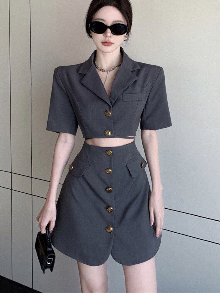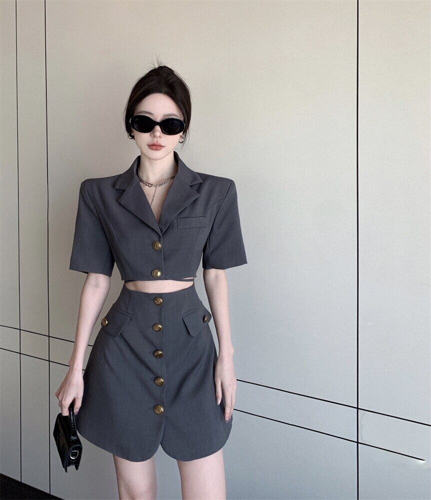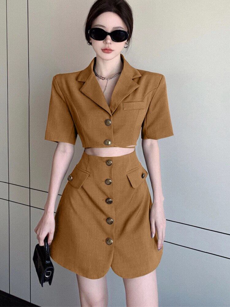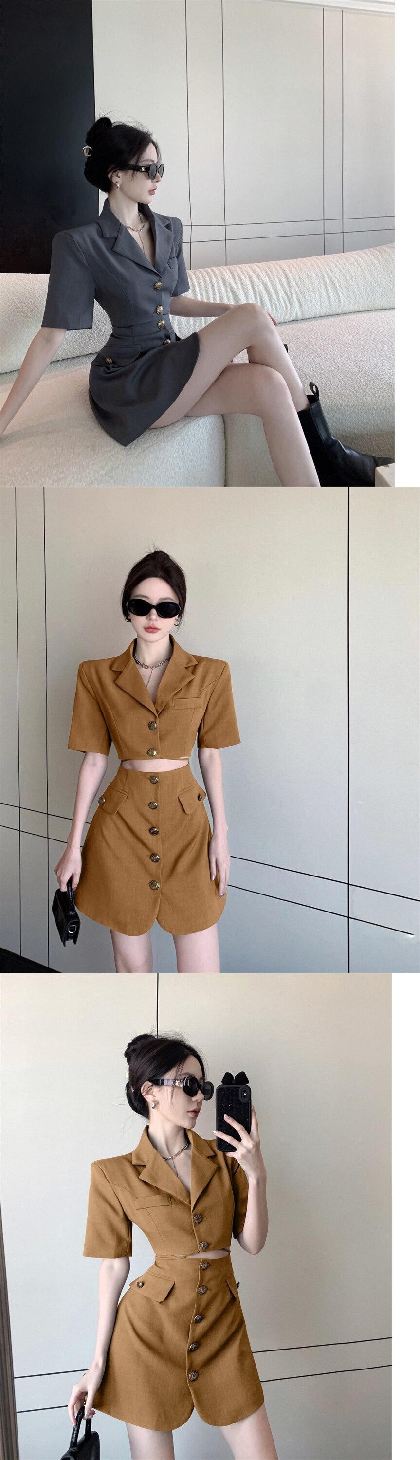 気質スーツドレス女性の夏のオフィスの女性スリムシングルブレスト半袖ミニドレス ショート ハーフスリーブ サマー 夏物 会社 学校 通勤や通学にも mes31729839896