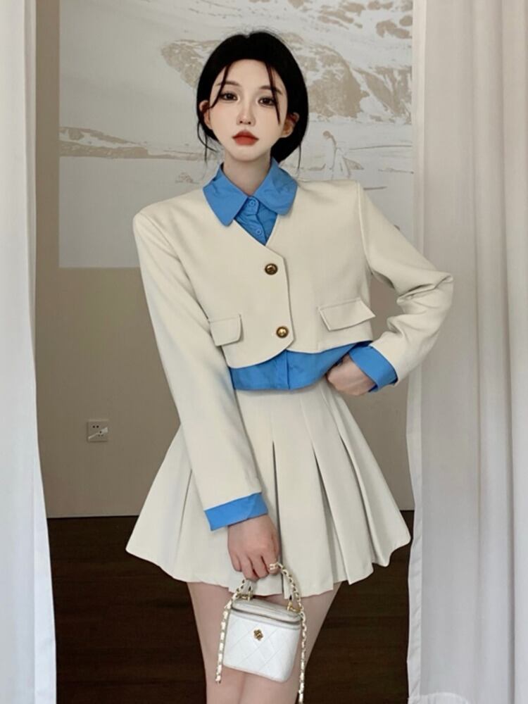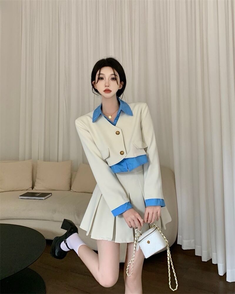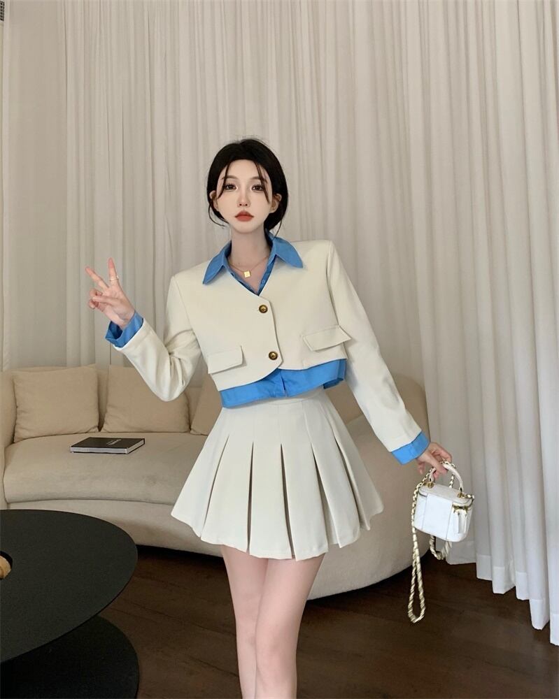 春ツーピースセット女性ブレザーコート + プリーツスカートスーツ OL 2 点セット女性衣装 スプリング 春物 mes8687885037