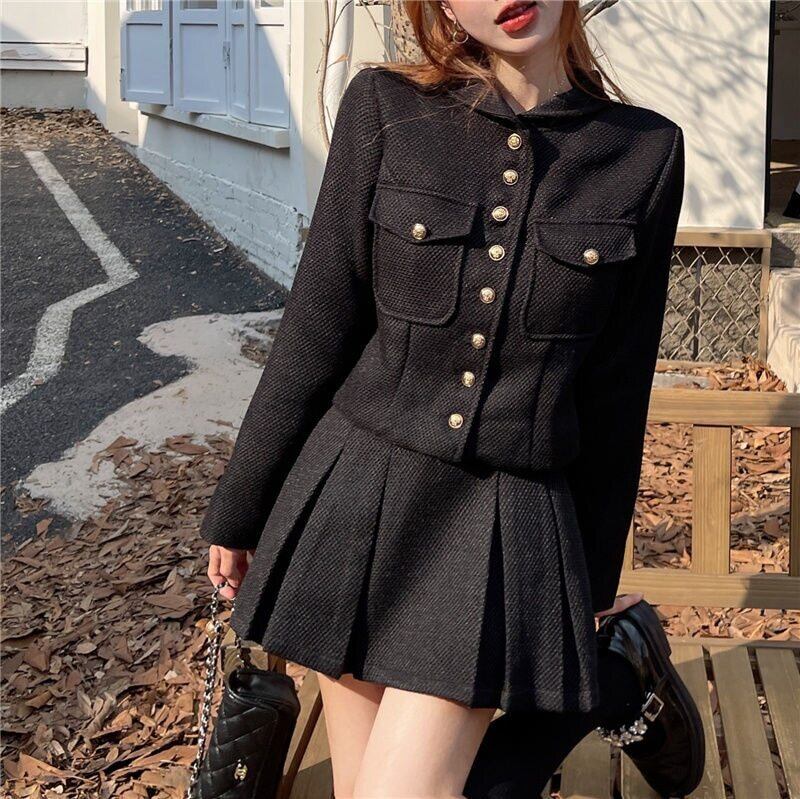 秋冬ツーピースセットレディース衣装コートクロップトップ + ショーツスカートスーツ conjuntos デファルダアンサンブルファムエレガンテ エレガント オータム 秋物 ウィンター 冬物 ブルマー フェミニン mes90268874127