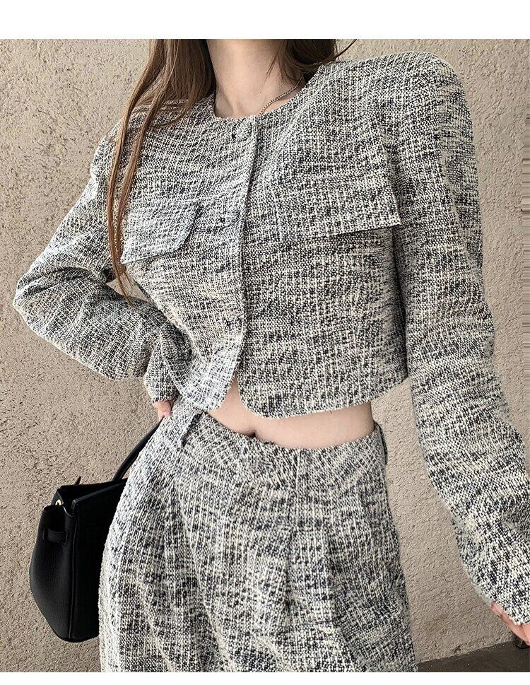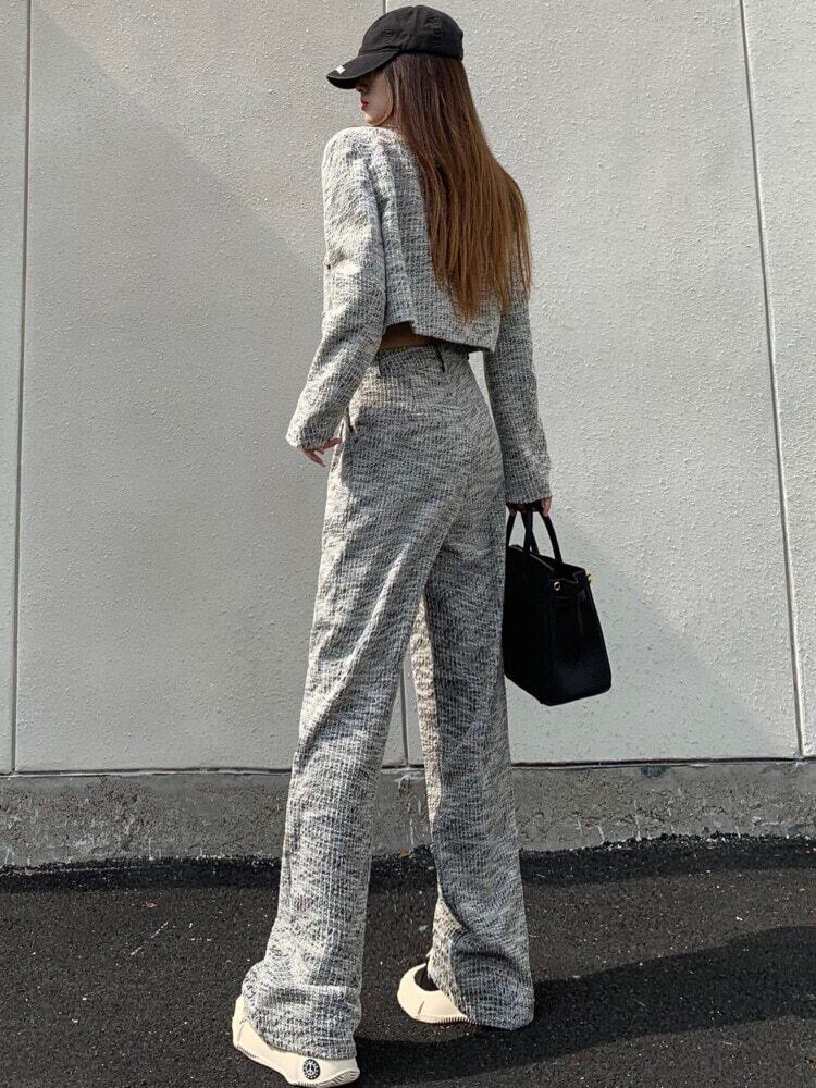 小さなフレグランス ツイード ツー ピース セット女性ショート ジャケット コート + ウエスト ワイドレッグ パンツ セット 2 ピース スーツ ワイドパンツ mes34630728528