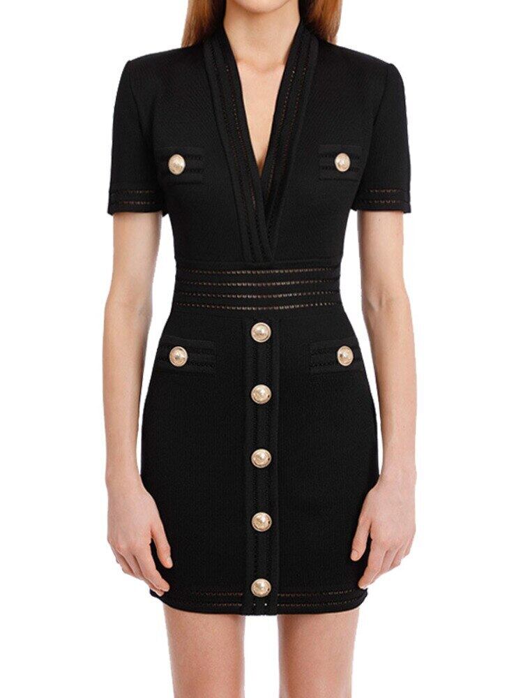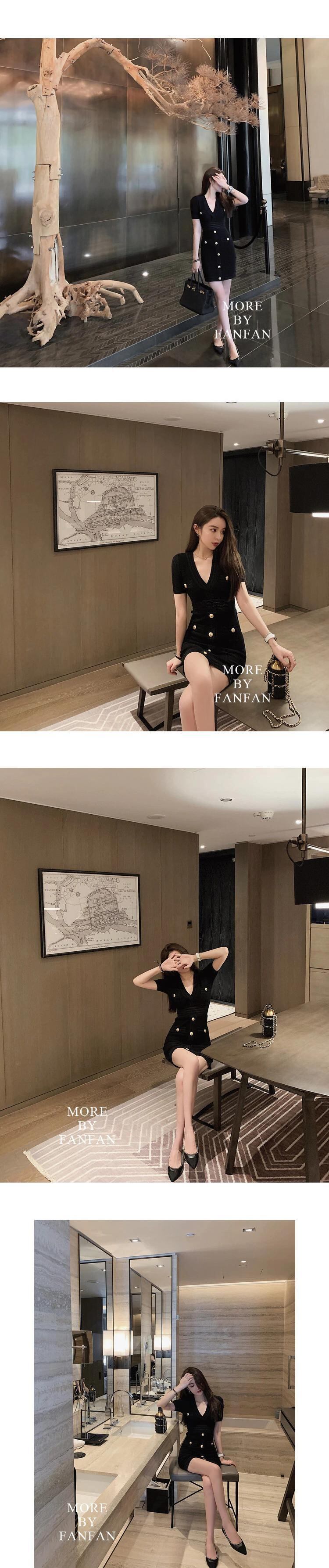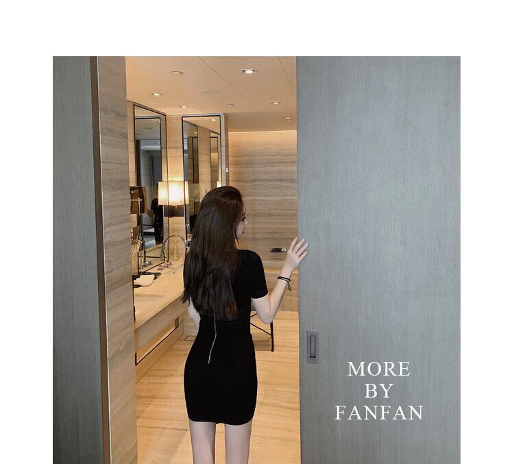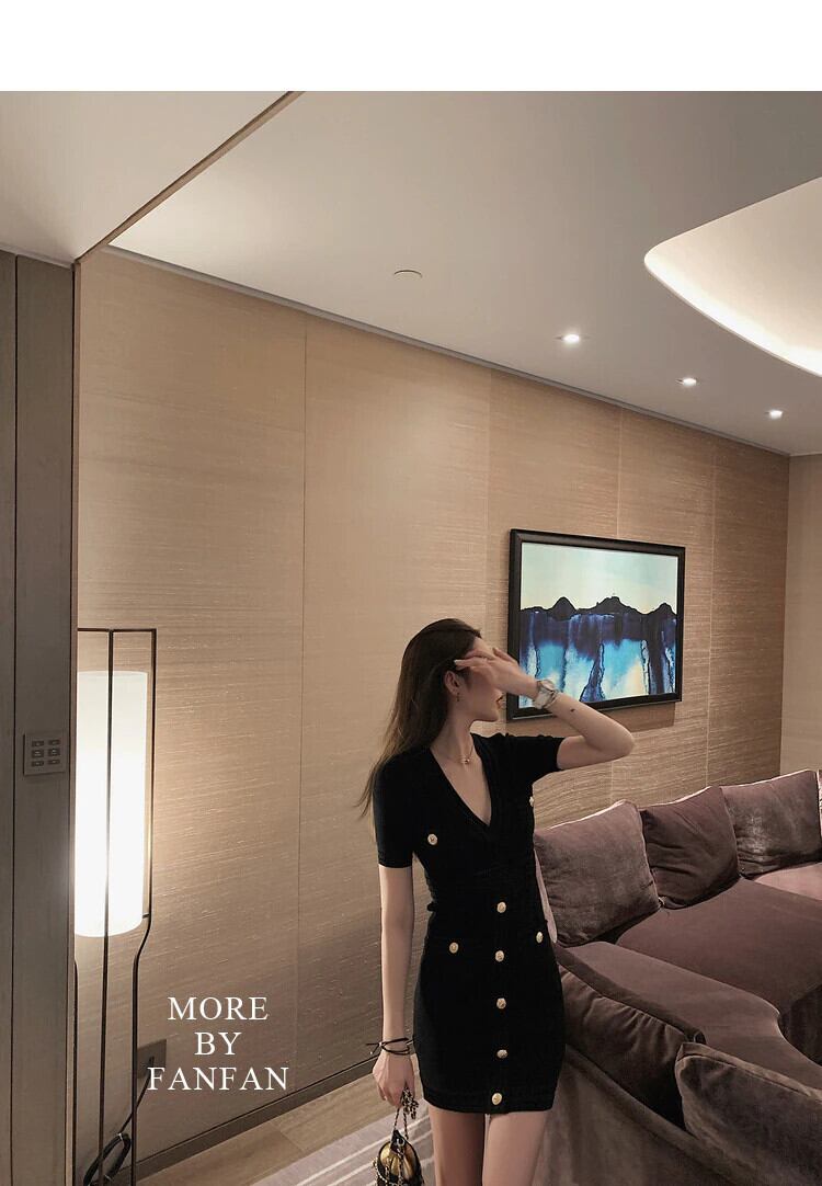夏フランスのセクシーな V ネック半袖ニットドレス女性スリムドレスポケットジップ衣装パーティードレス ショート ハーフスリーブ サマー 夏物 Vネック mes26298206380