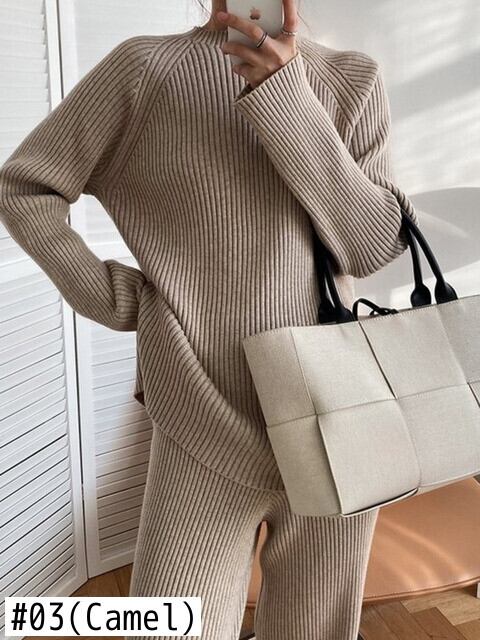 秋冬トラックスーツ女性ジャンパープルオーバーセータートップス + ワイドレッグパンツスーツニット 2 点セット オータム 秋物 ウィンター 冬物 ワイドパンツ mes38869771234