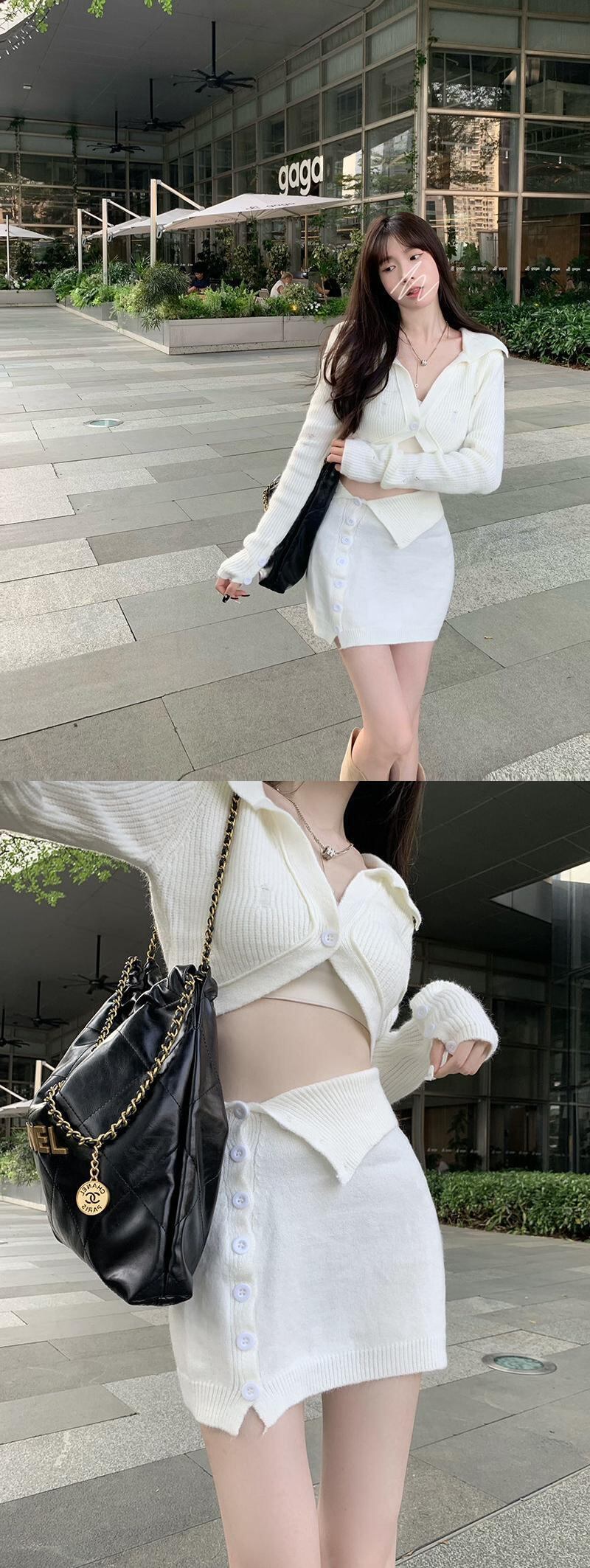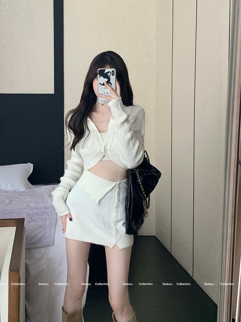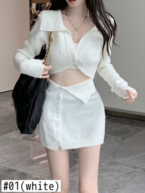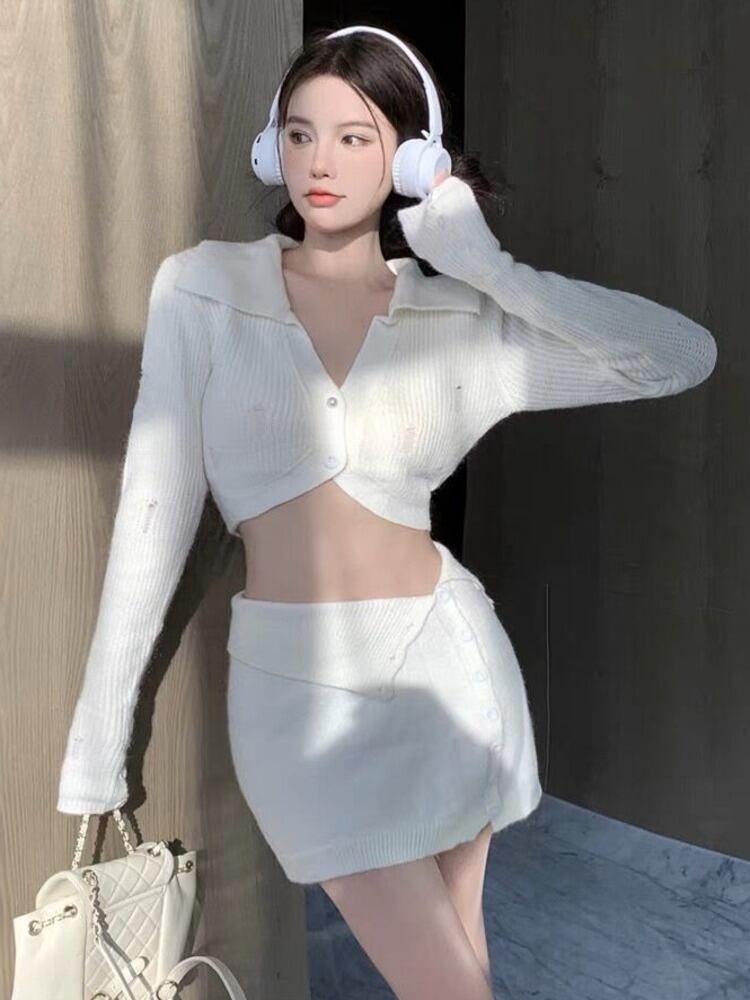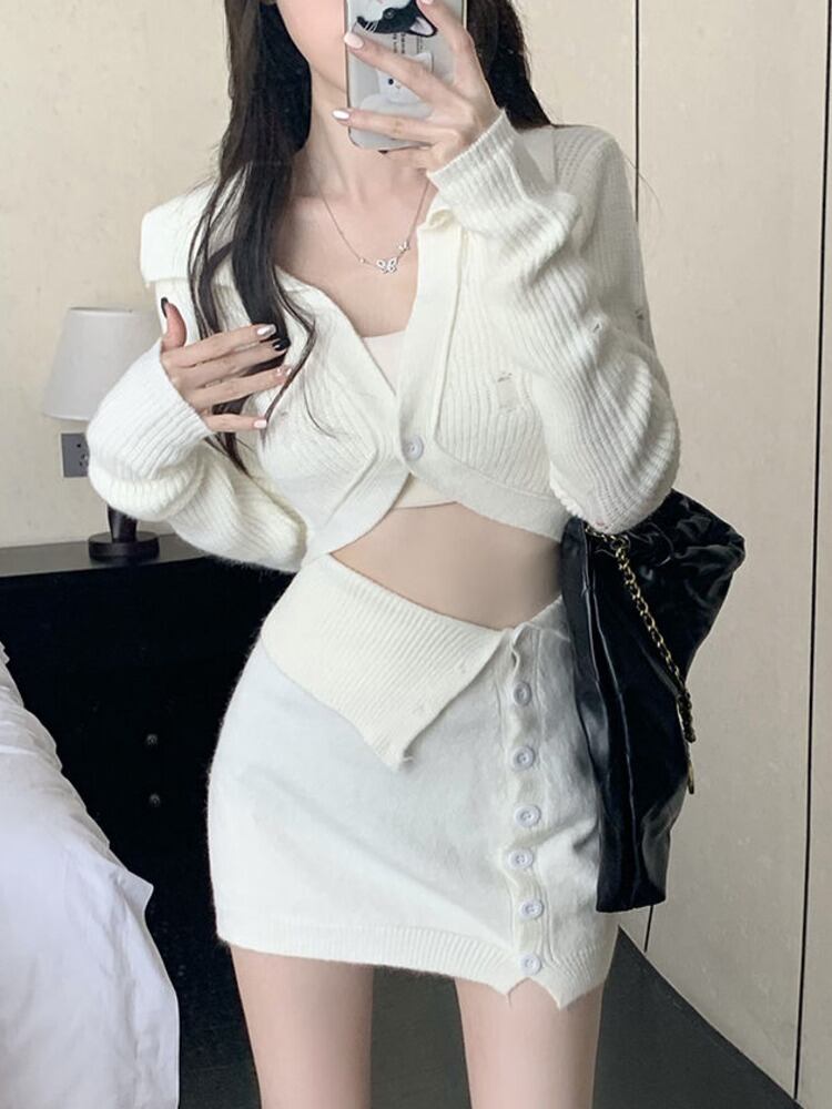Hotsweet ニットツーピースセット女性長袖ショートセーターカーディガントップス + ボディコンスカートセット甘い 2 ピーススーツ ロング 大人ガーリー スウィート キュート カジュアル mes74899977662