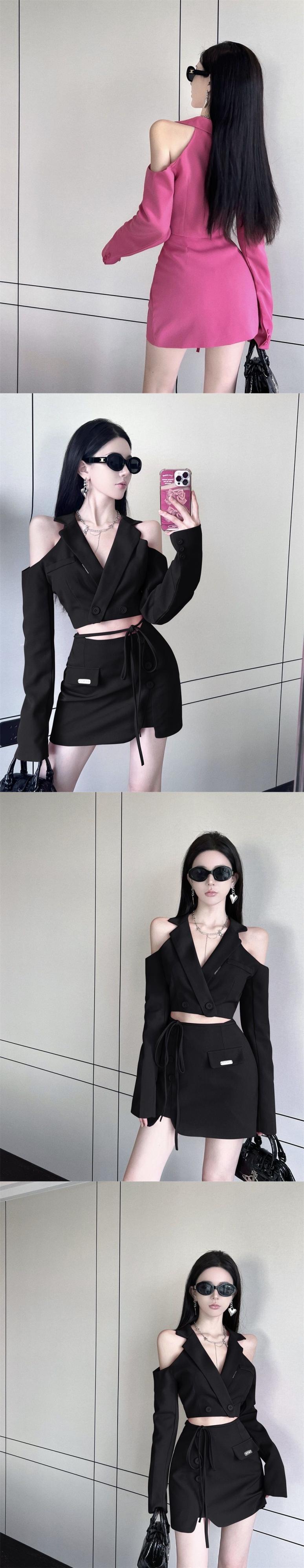 OL ツーピースセット女性ショートブレザーコートクロップトップ + ボディコンスカートスーツ秋セクシーな 2 点セット女性衣装 オータム 秋物 mes37231514995