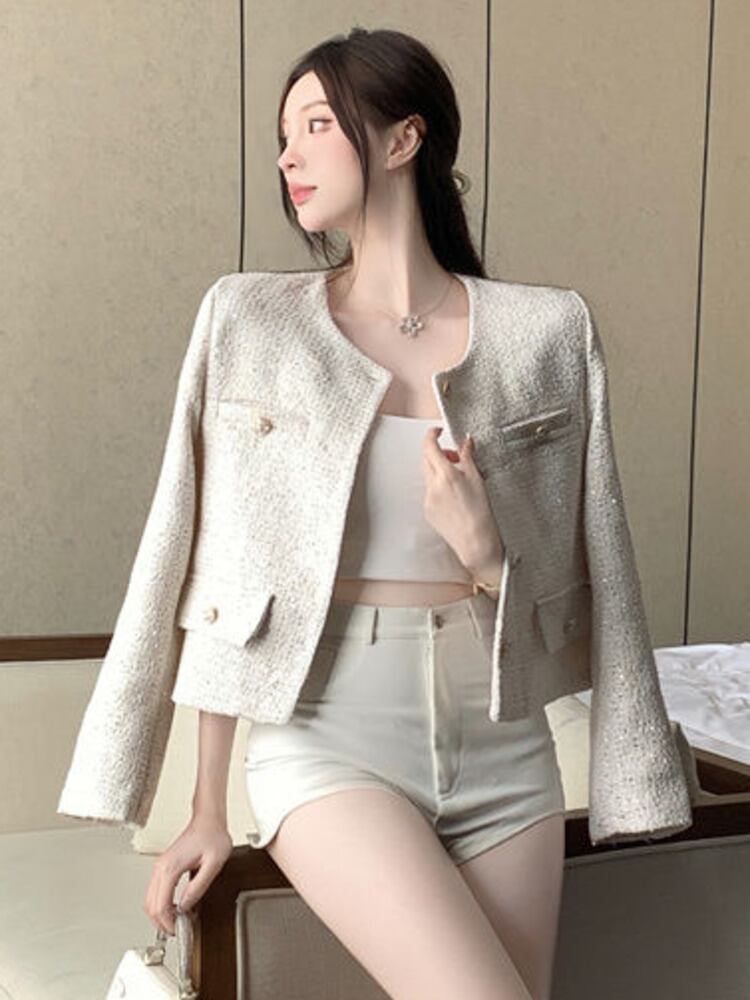 小さな香りツイードジャケットコート女性秋冬フライドストリートショートコート Casaco ウール生き抜く ウィンター 冬物 mes23508470491