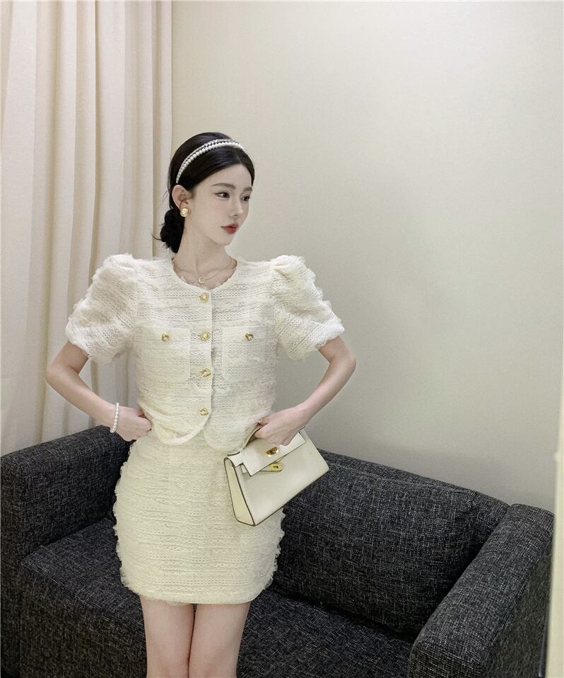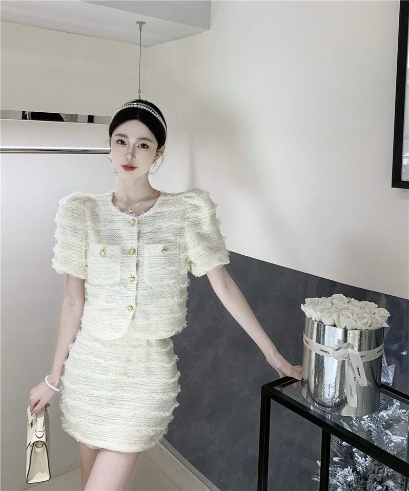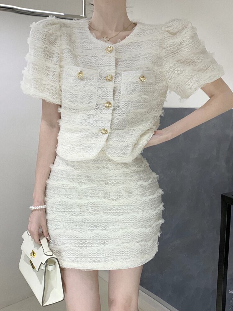 小さなフレグランス 2 点セット女性シャツ ブラウス トップ + ミニ スカート スーツ レース 2 点セット女性衣装 mes62049513589