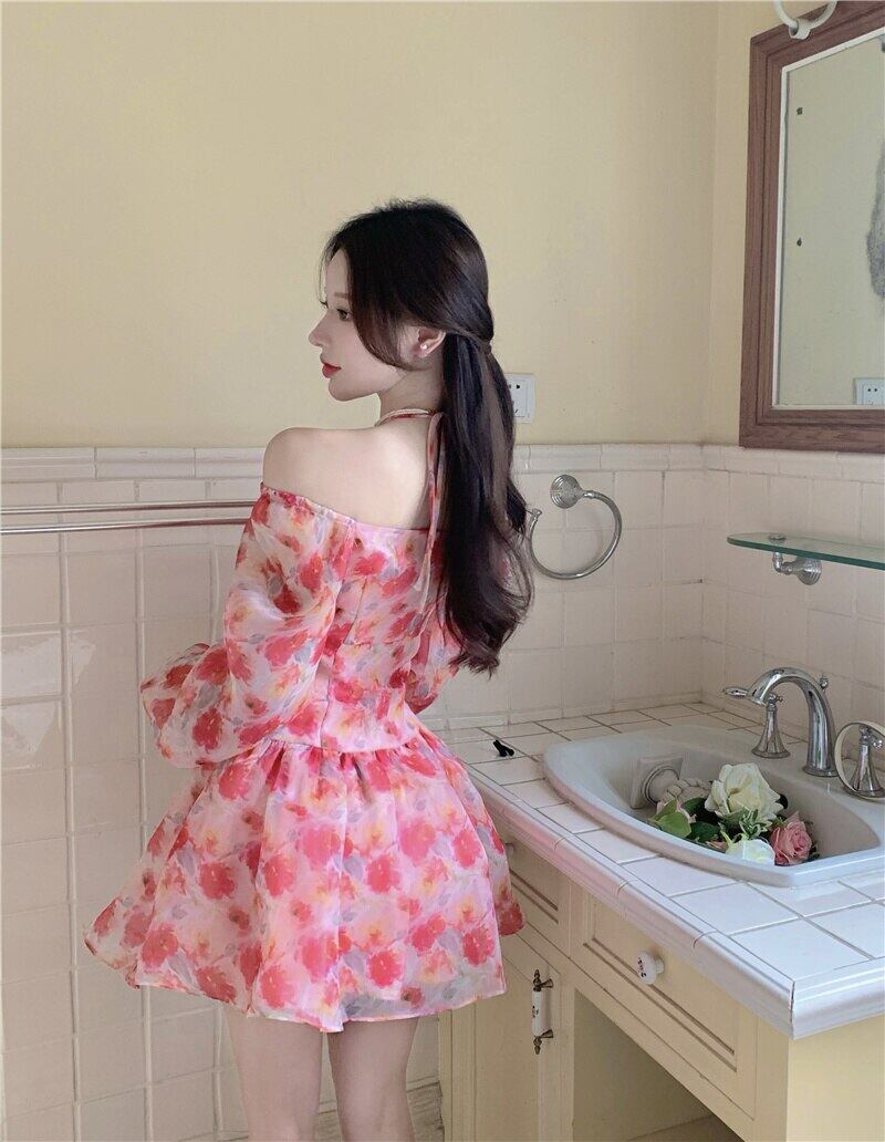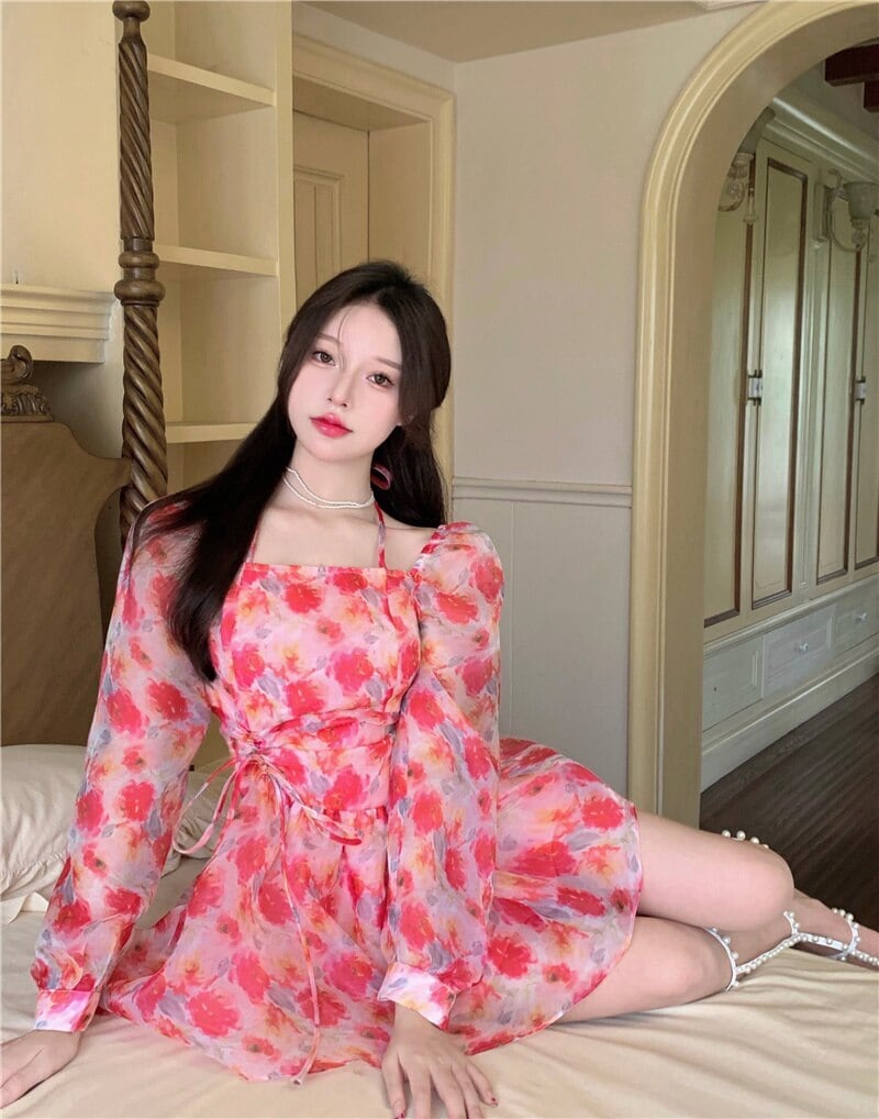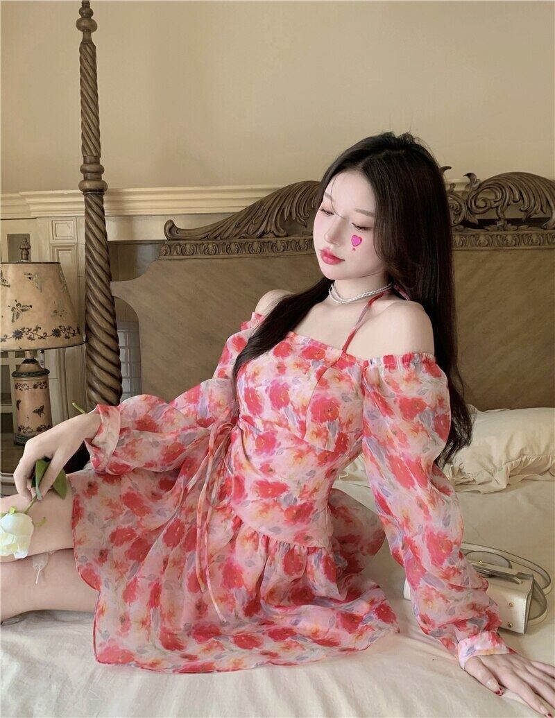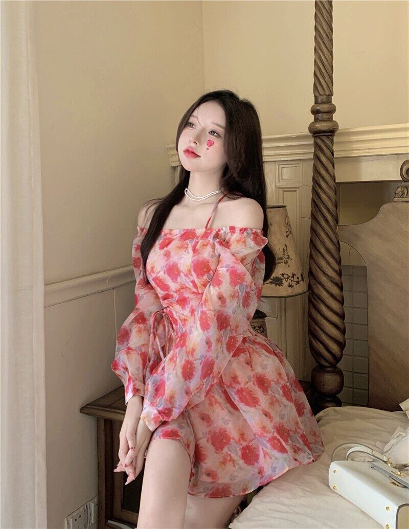 春夏フレンチスーパーフェア自由奔放に生きるビーチドレスガールズ HotSweet スクエアネック女性ボヘミア花柄長袖パーティードレス ロング 大人ガーリー スウィート キュート カジュアル スプリング 春物 サマー 夏物 スクウェア mes16897042509