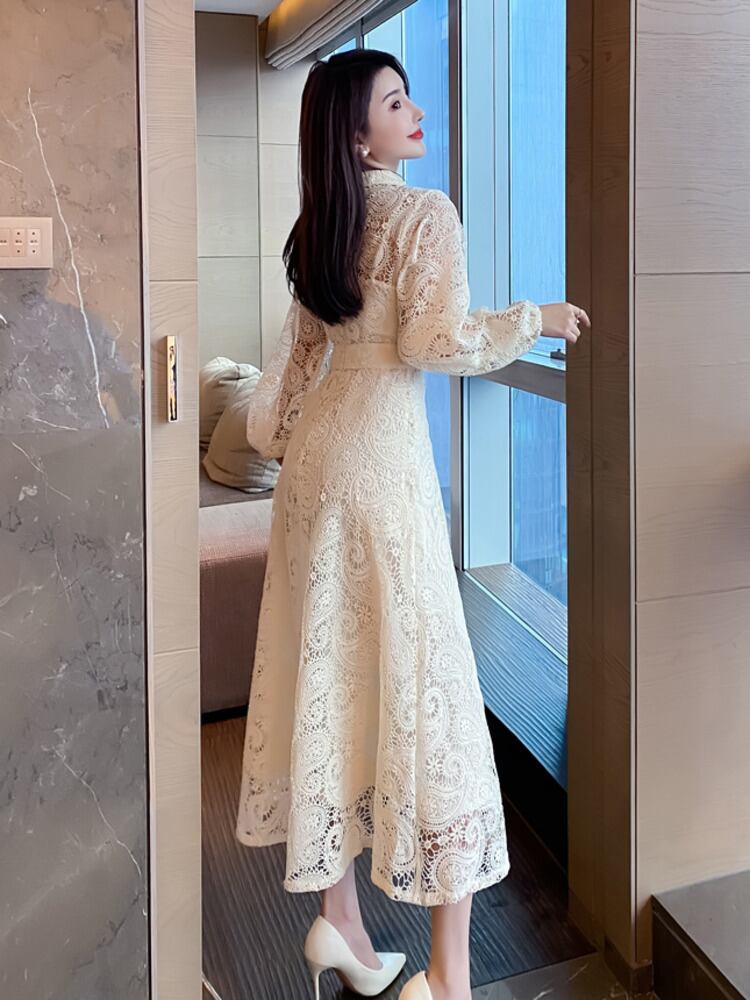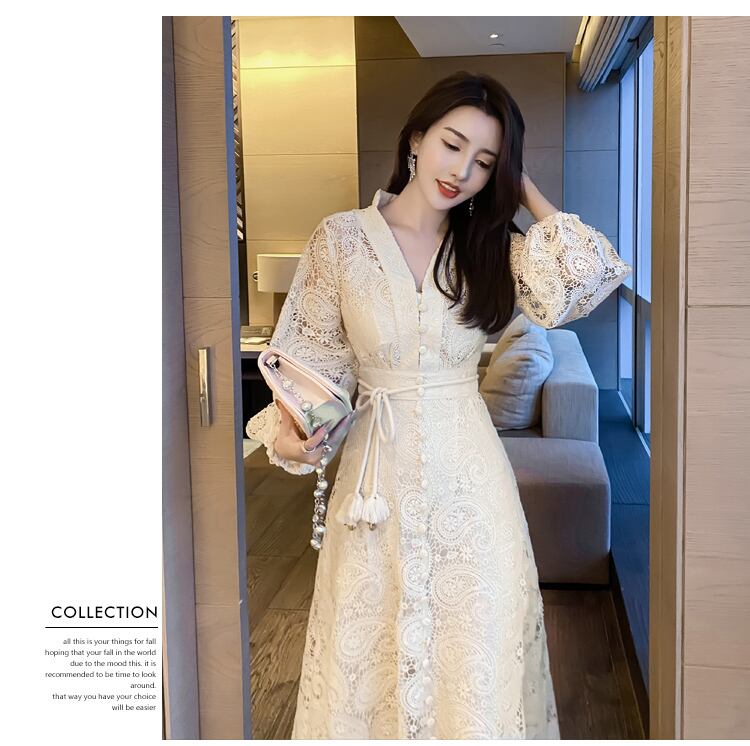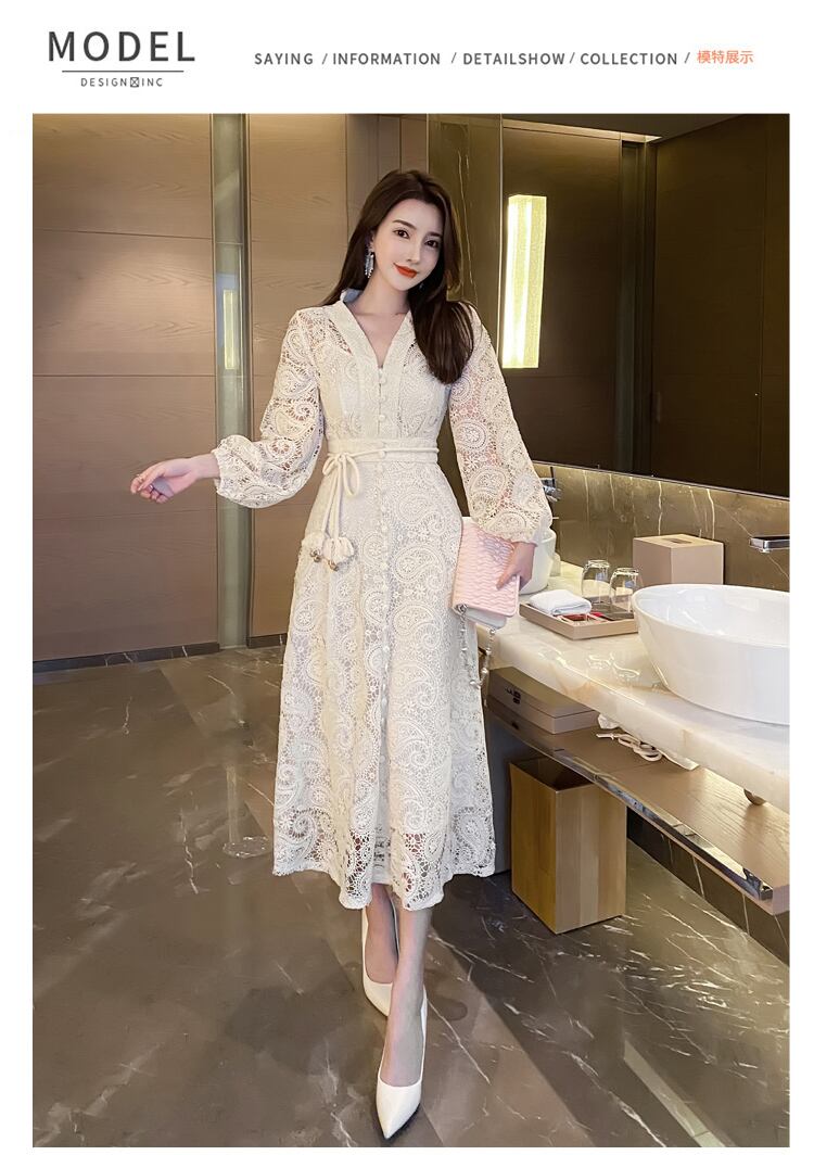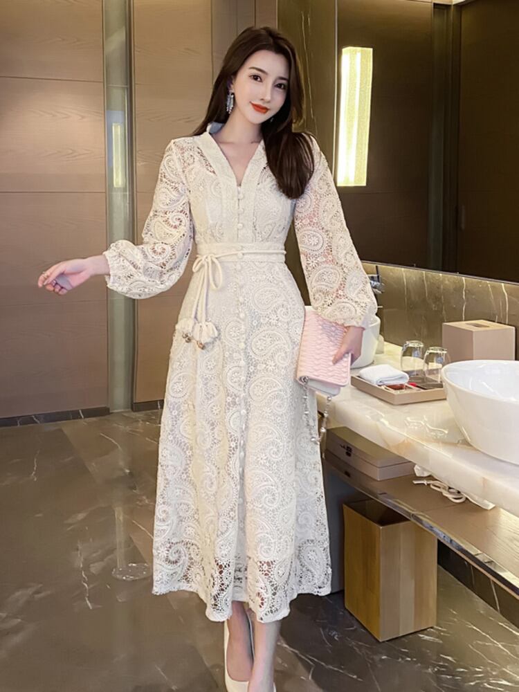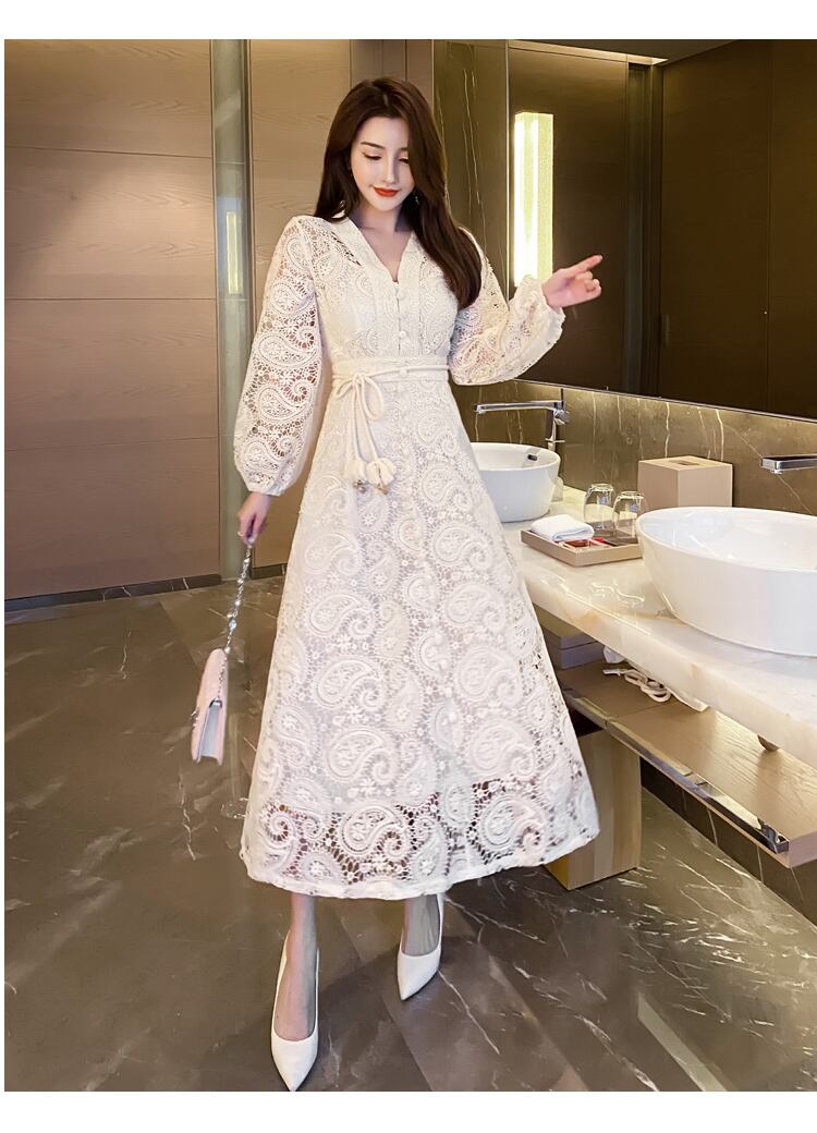 フランスの高級中空アウト レース ロング ドレス パーティー ドレス女性ローブ mes51717208314