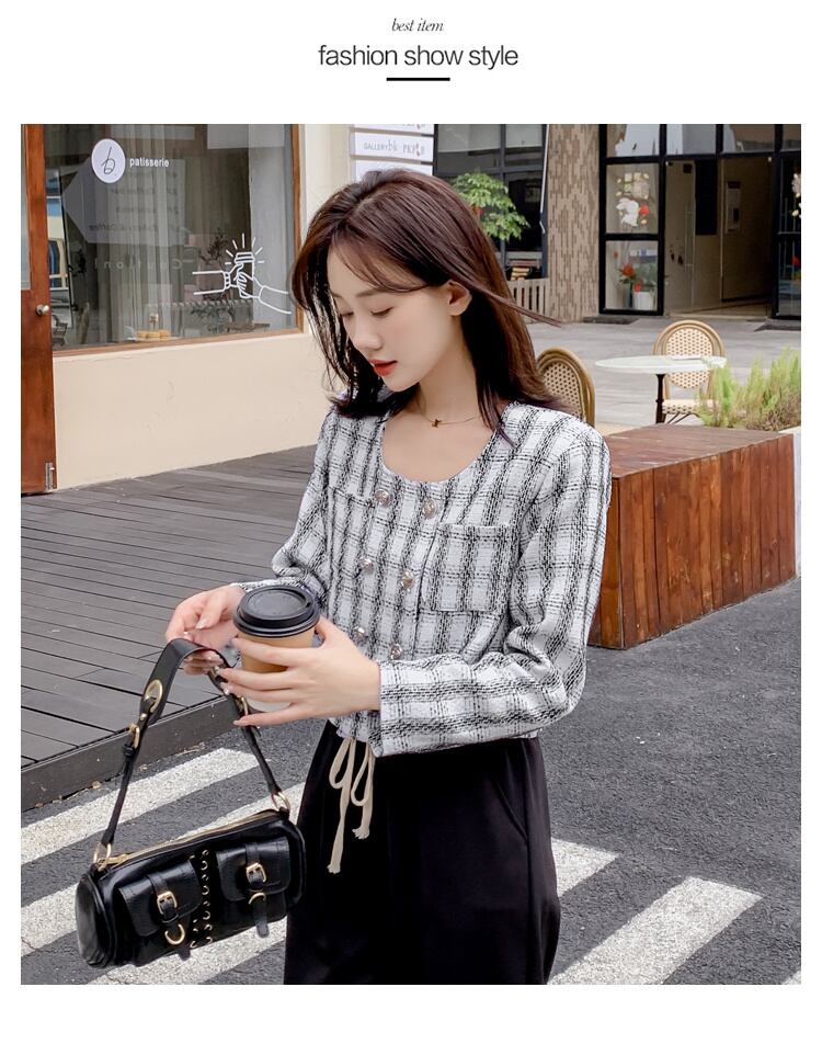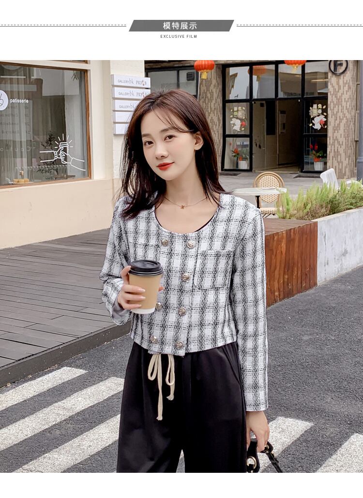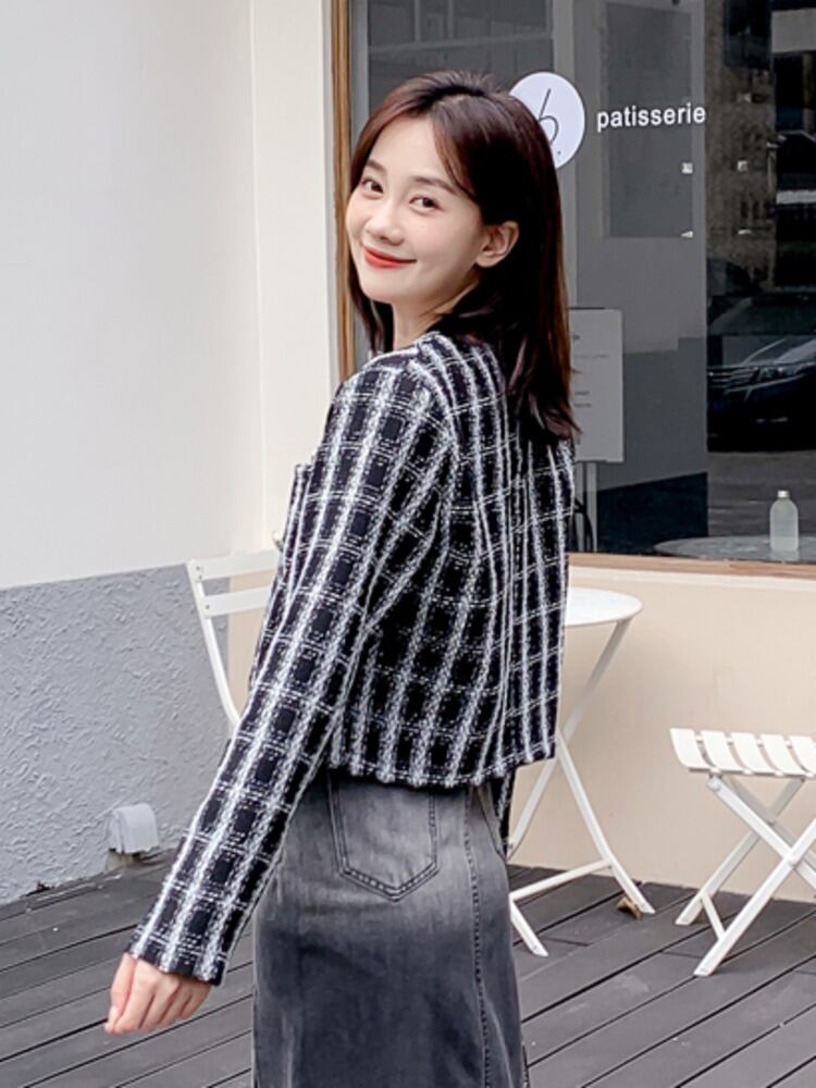 フレンチツイードショートジャケット女性春インダブルブレスト気質小さな香りの良い格子縞のコート上着 スプリング 春物 mes35745378057
