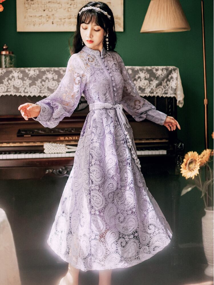 フランスの高級中空アウト レース ロング ドレス パーティー ドレス女性 Vestidos mes36699435983