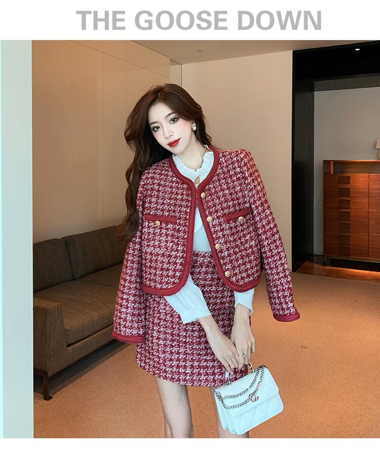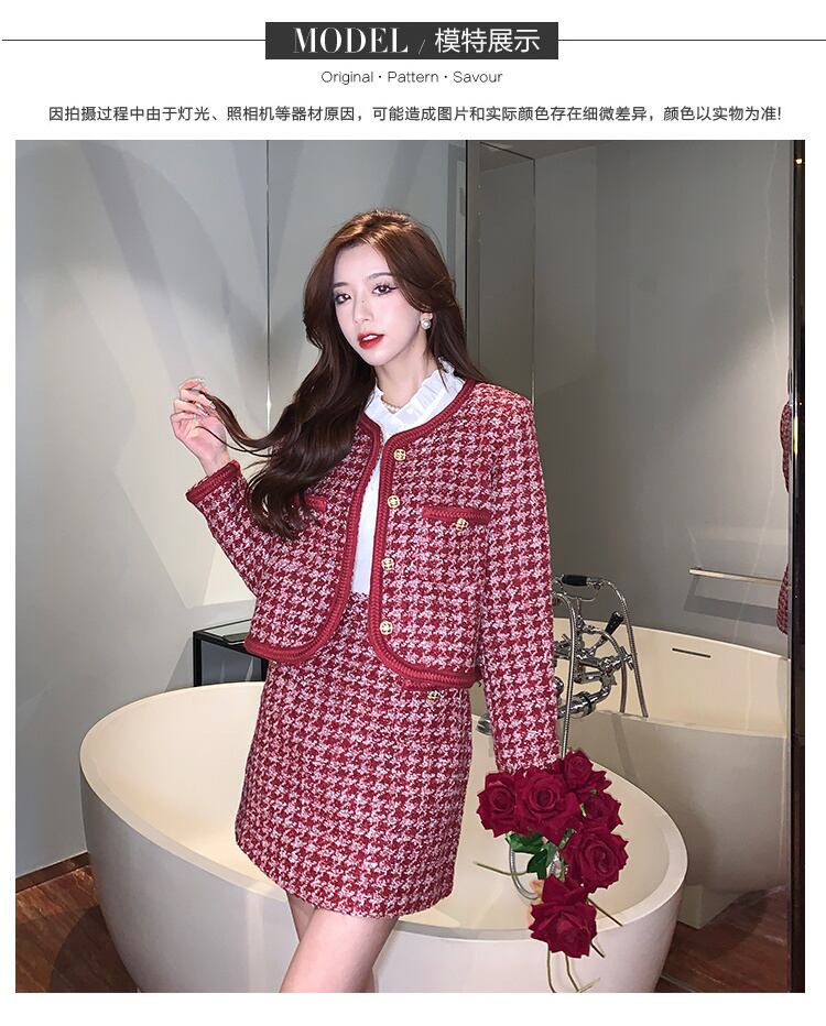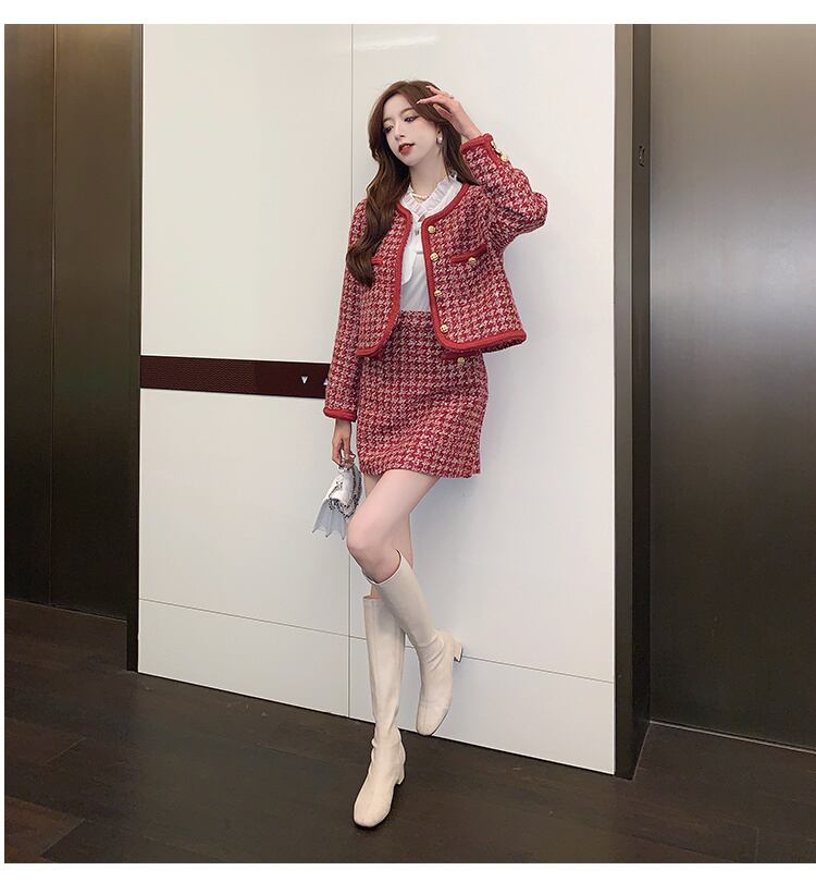 小さなフレグランス ツイード 2 点セット女性服ジャケット コート クロップ トップ + スカート セット 2 点スーツ mes37167694441