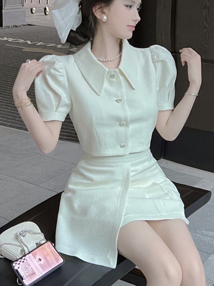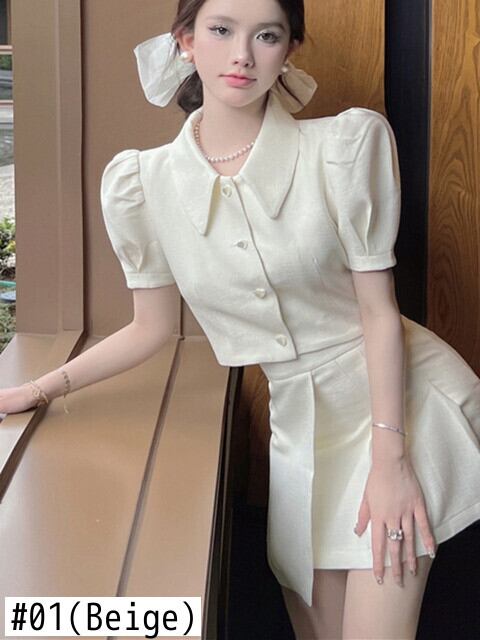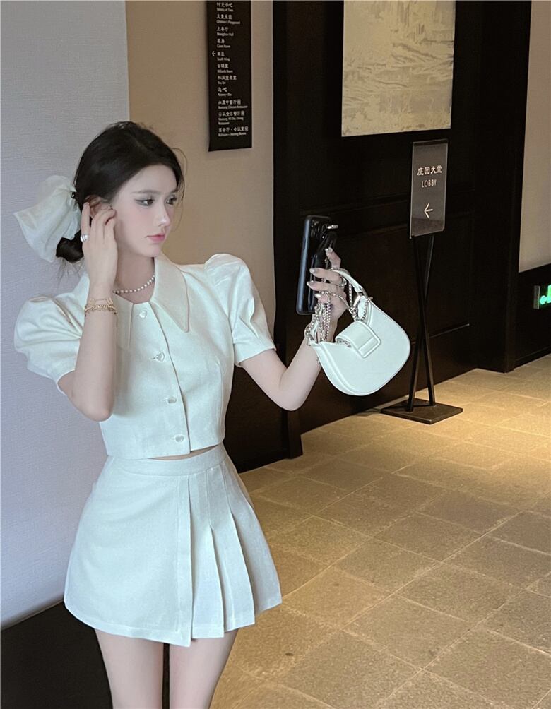 夏ツーピースセット女性クロップトップ + プリーツショートスカートスーツ conjuntos conjuntos cortos 2 点セット女性衣装 サマー 夏物 mes58332789300