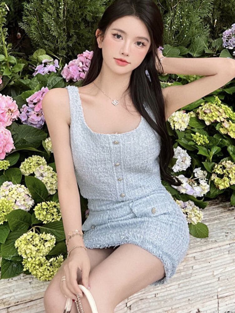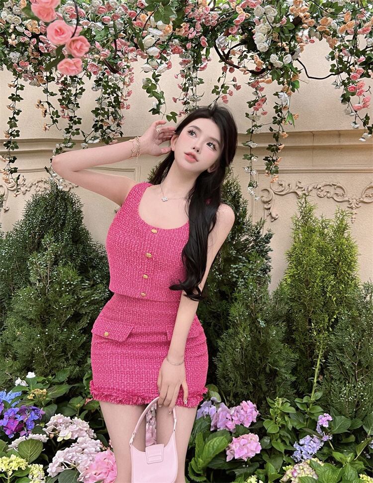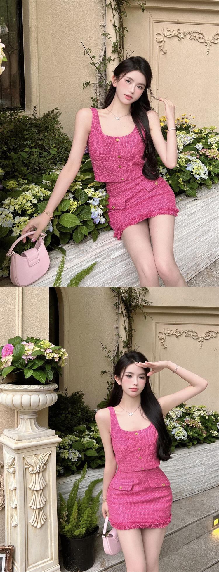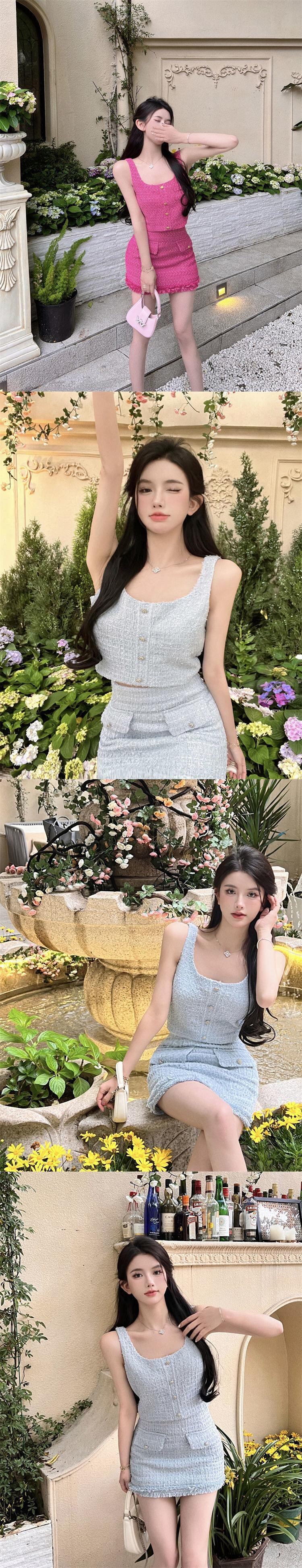 夏ツイード 2 点セット女性ベスト クロップ トップ + ミニ スカート セット甘い夏 2 点セット女性衣装 大人ガーリー スウィート キュート カジュアル サマー 夏物 mes43950608939