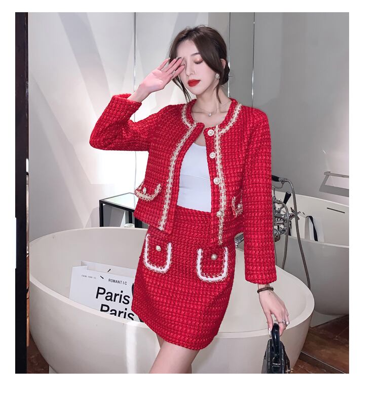 秋冬 conjuntos デファルダツイードスーツジャケットトップ女性コート + ミニスカートセット 2 点セットレディース衣装 オータム 秋物 ウィンター 冬物 mes46899358561