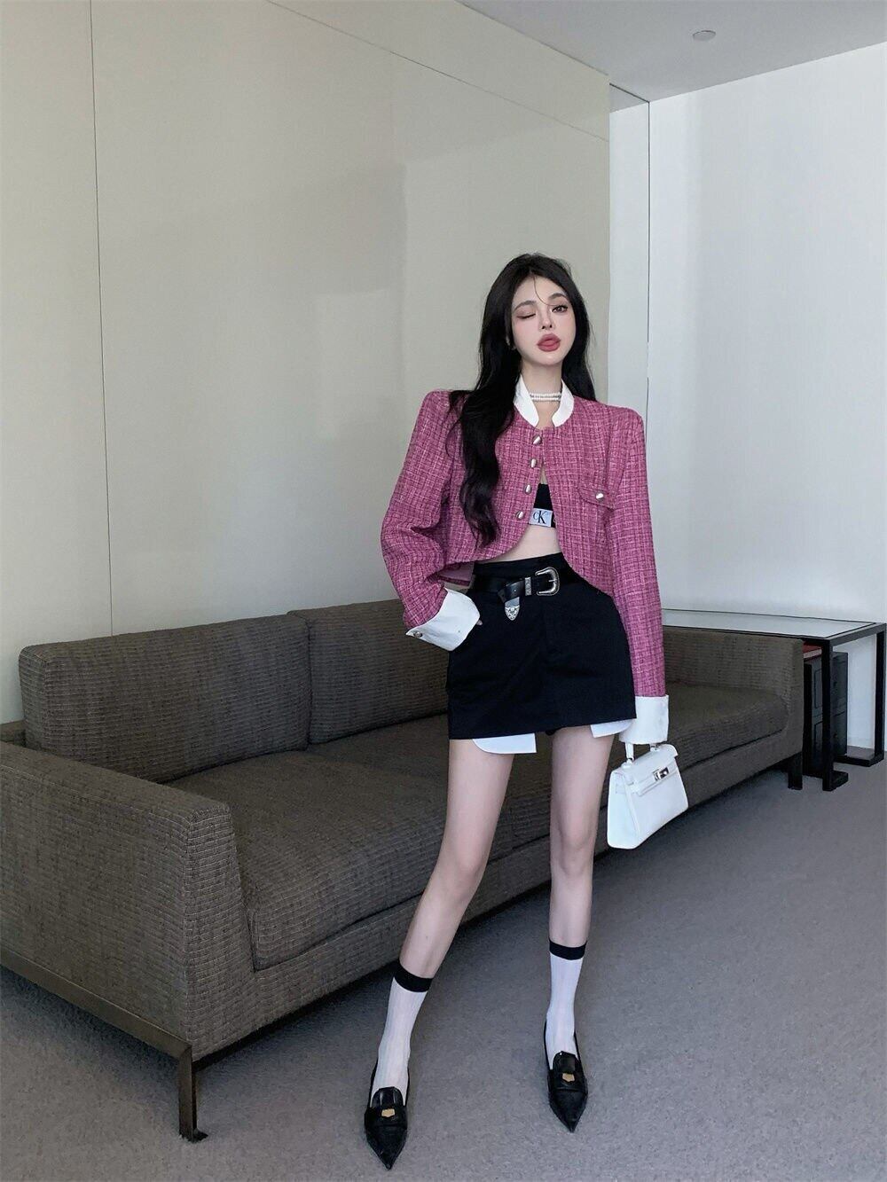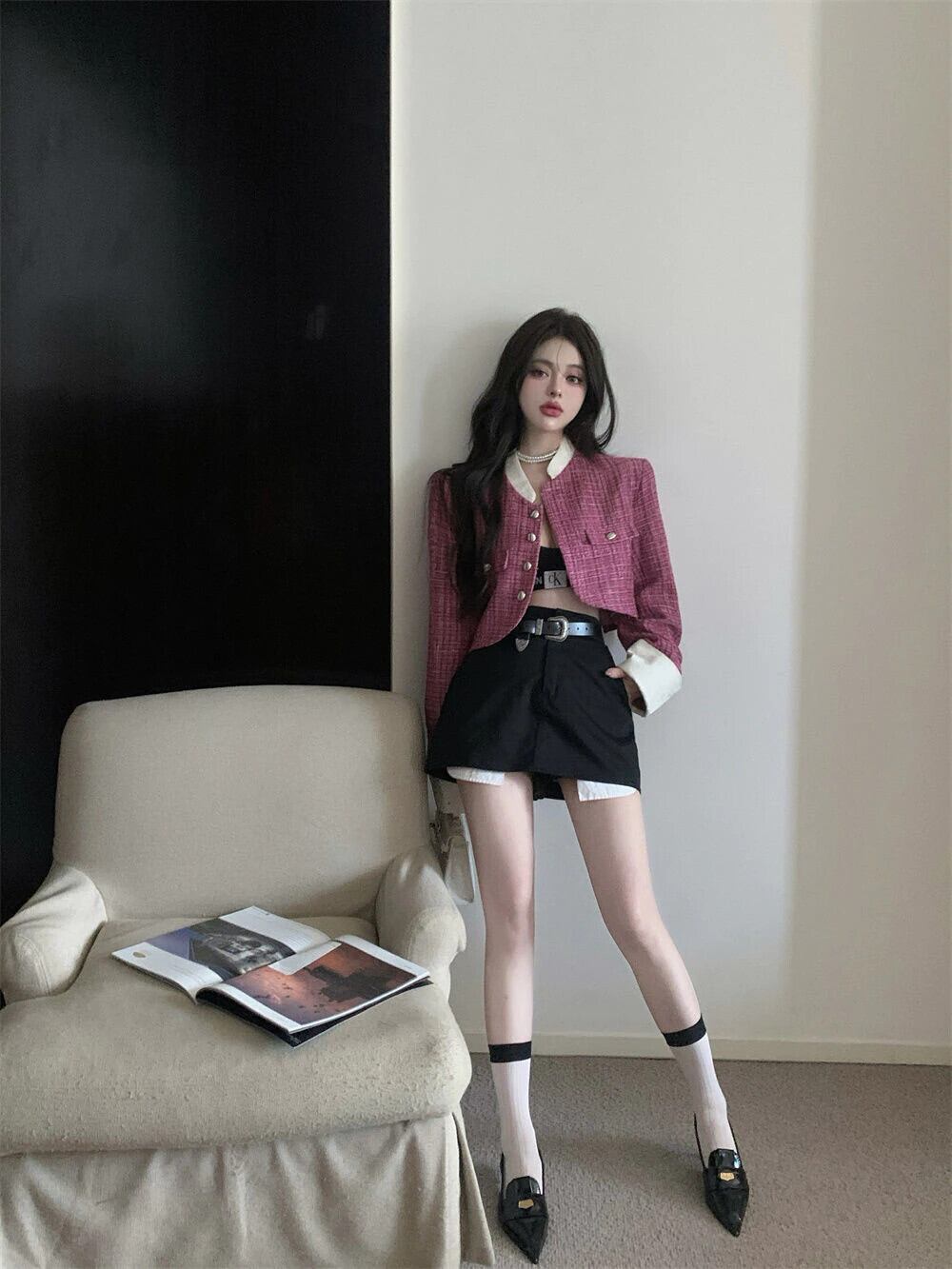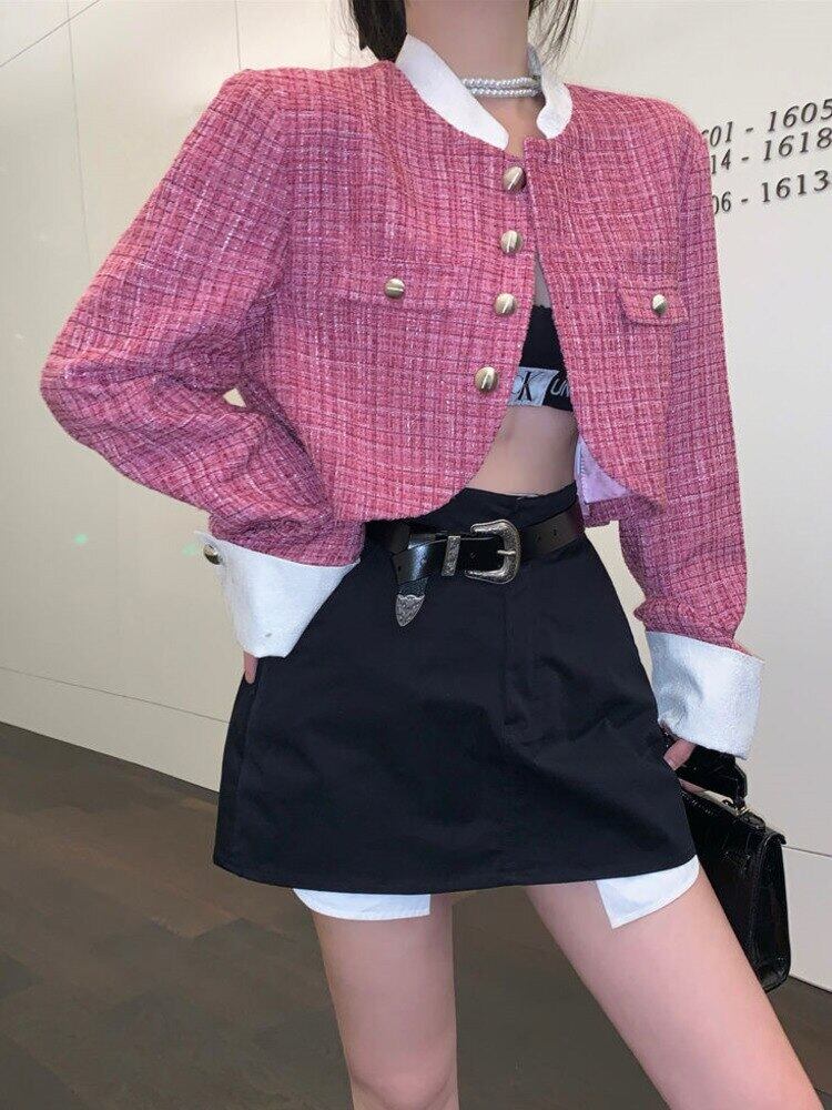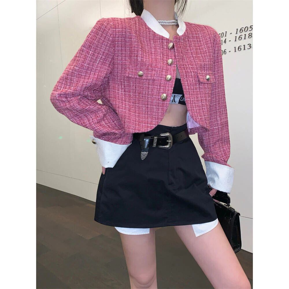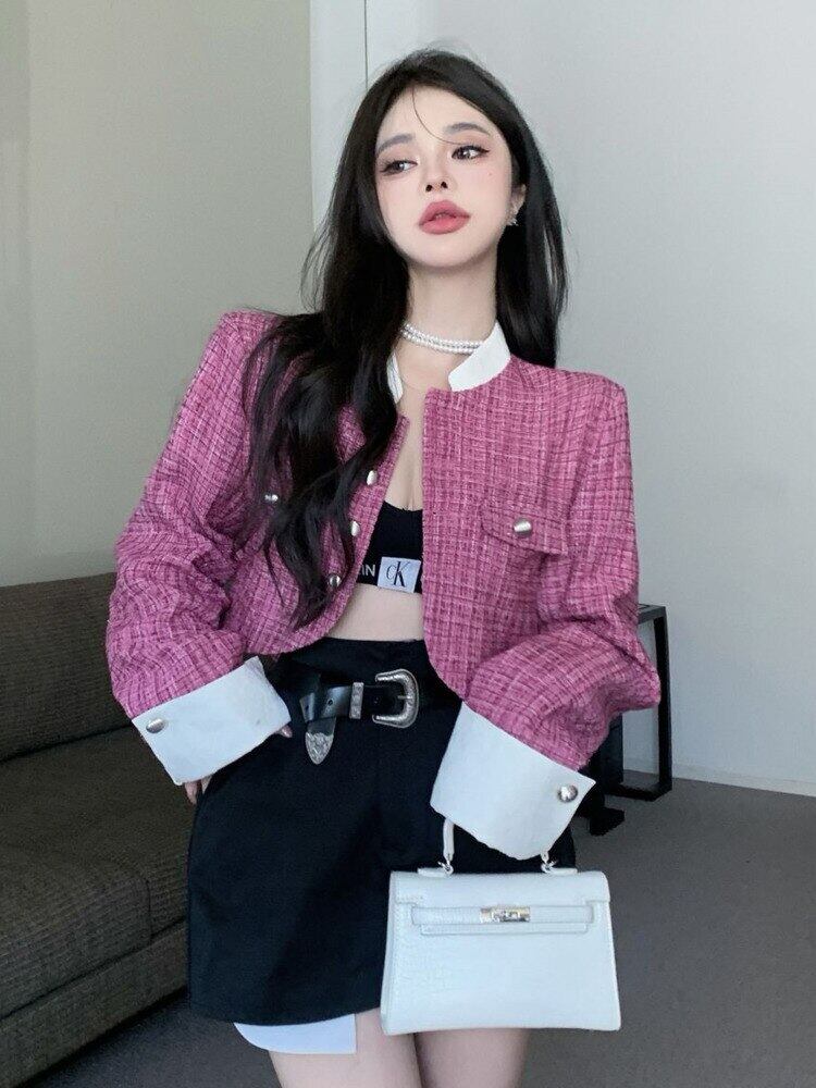 秋冬スウィートツイードジャケットコート女性できる小さな香りショートコートシックな上着 Casaco Feminino 大人ガーリー キュート カジュアル オータム 秋物 ウィンター 冬物 mes60036296896