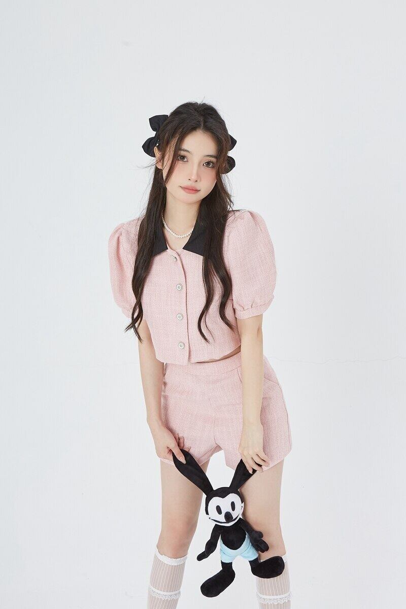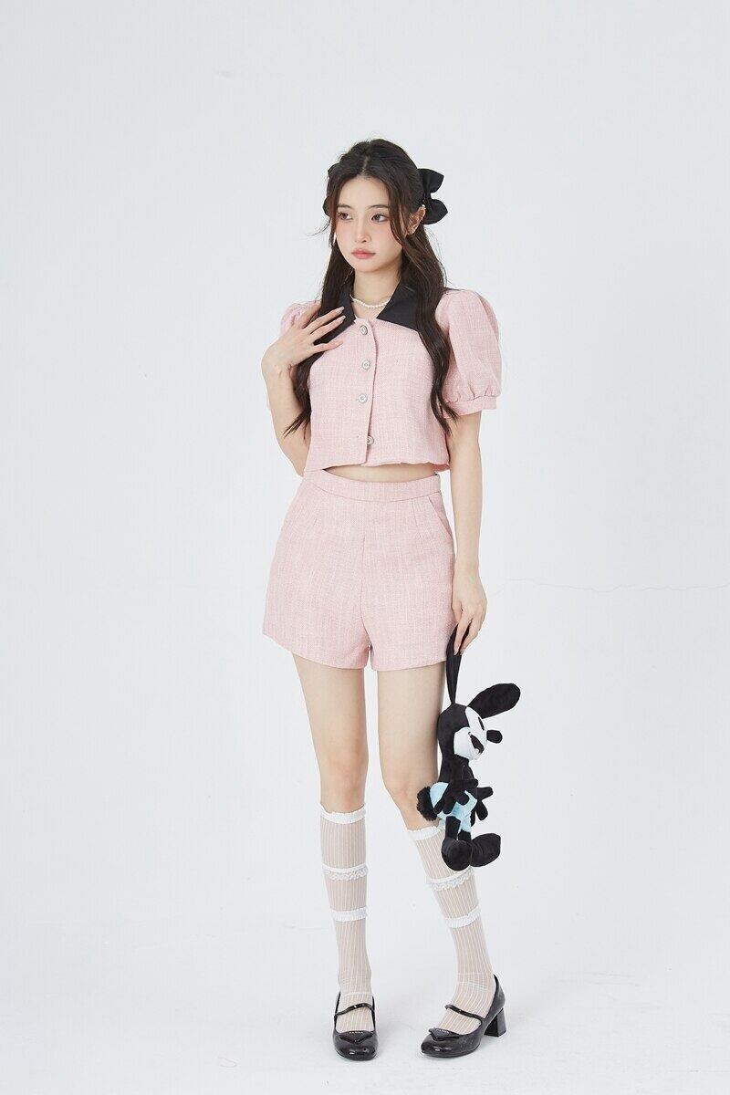 甘い小さな香り 2 点セット女性シャツ クロップ トップ & ショート セット夏 2 点パンツ セット 大人ガーリー スウィート キュート カジュアル サマー 夏物 mes8718888231