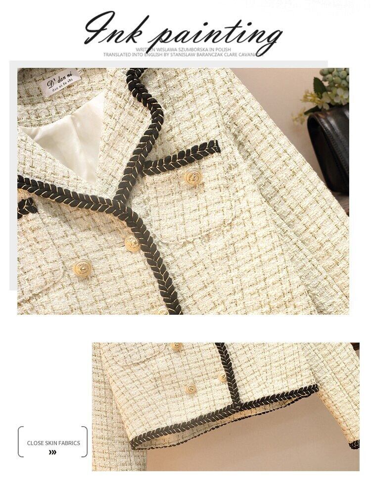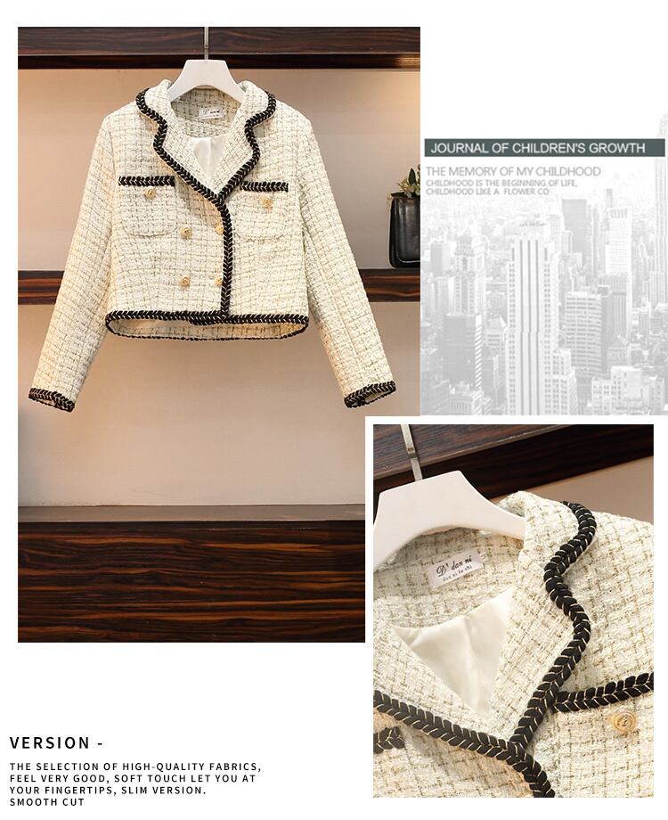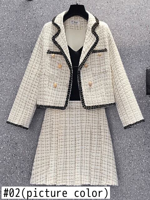 Hgih ツイード 2 ピース セット レディース衣装クロップ トップ ジャケット コート + プリーツ スカート セット conjuntos feminino エレガンテ エレガント mes53234142725