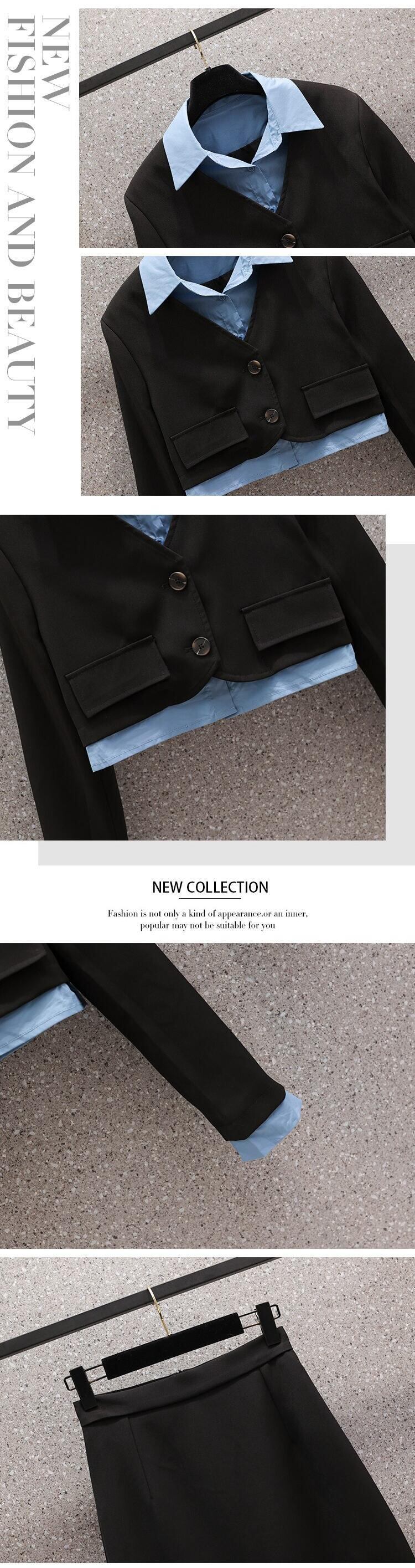 コーデュロイ ツーピース セット女性フェイク ツーピース スプライシング ブレザー コート + ロング スカート セット 2 ピース スーツ mes95492186999