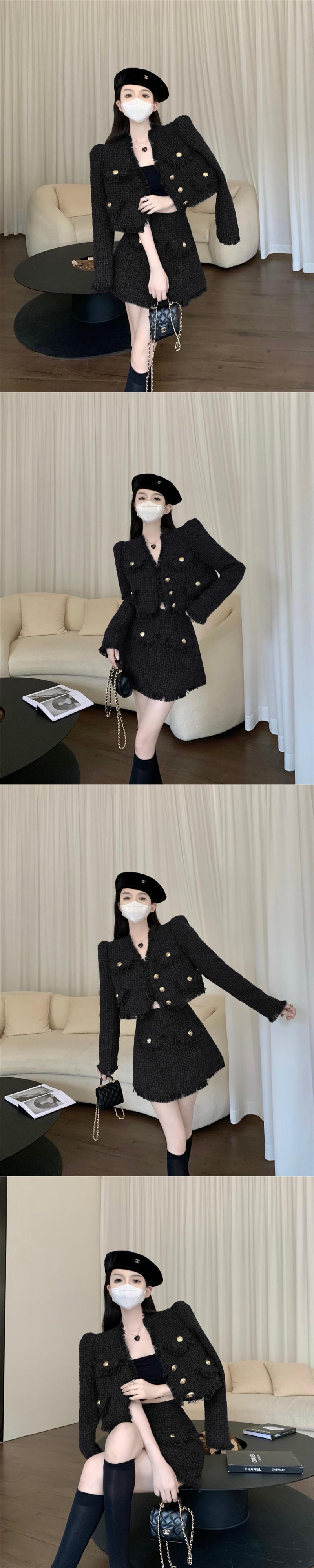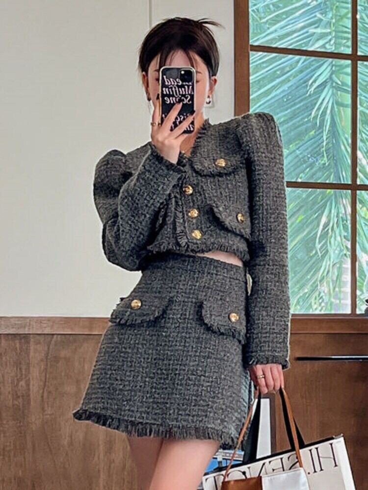 スモール フレグランス ツーピース セット レディース ショート ジャケット コート + スカート スーツ フライド ストリート 2 ピース アウトフィット mes42916580893
