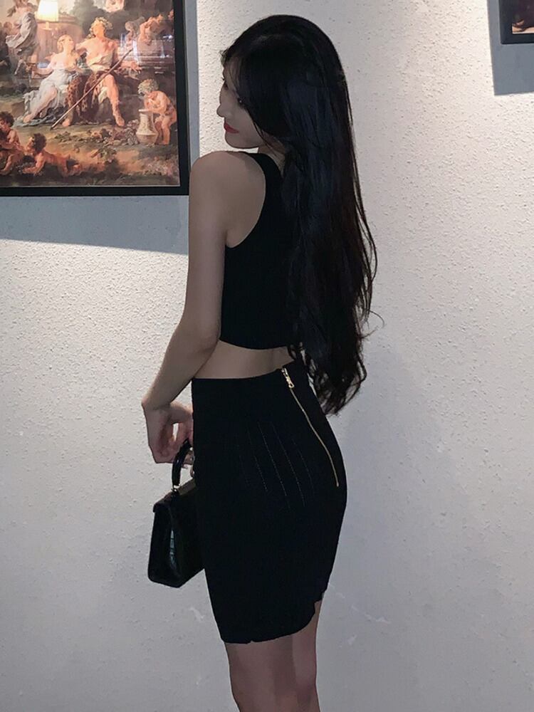 夏セクシーなゴールドボタンニットツーピースセット女性ベストクロップトップ + ウエストボディコンスカートセット HotSweet 2 ピーススーツ 大人ガーリー スウィート キュート カジュアル サマー 夏物 mes58434543827