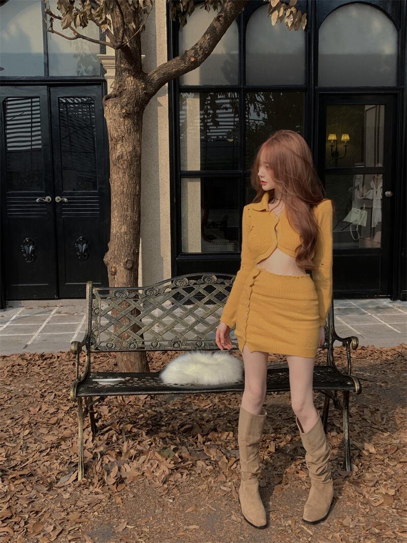 セクシーガールニットツーピースセット女性衣装秋セータークロップトップ & ボディコンスカートスーツ Hotsweet 2 ピースセット 大人ガーリー スウィート キュート カジュアル mes52157339545