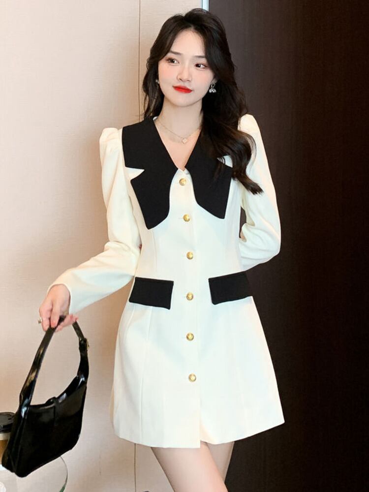 秋冬 OL ブレザードレス女性ストリート長袖小さなフレグランスローブ女性スリムスーツドレス ロング オータム 秋物 ウィンター 冬物 mes51782685057