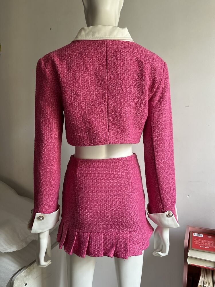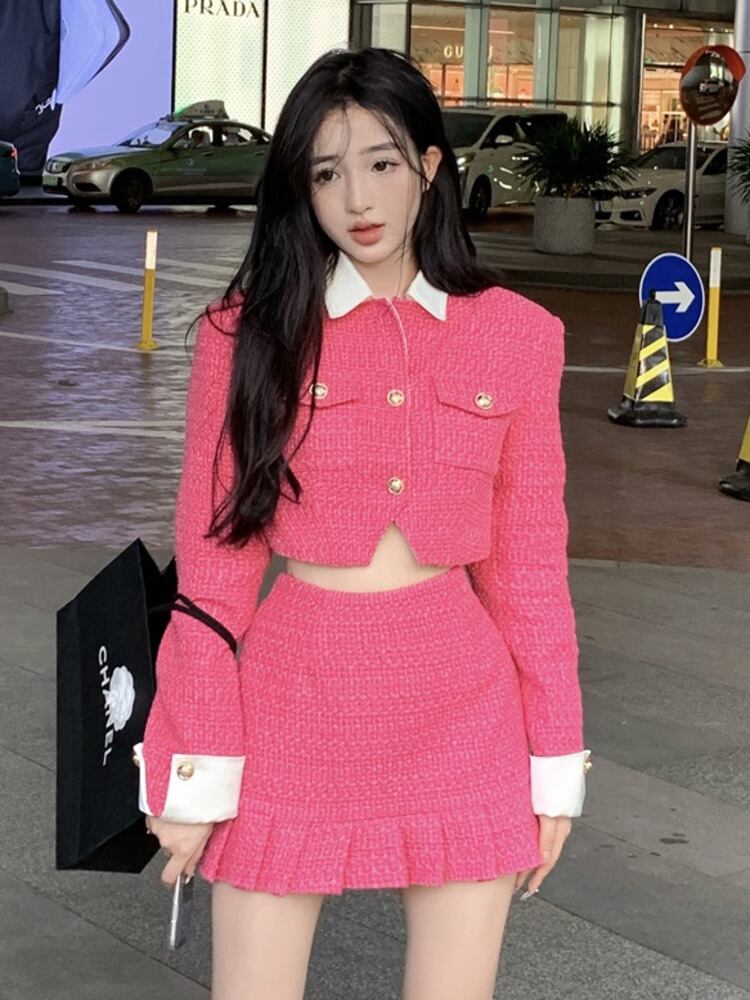 スウィートスモールフレグランスツイード2点セット女性ジャケットコートクロップトップ+ミニスカートセット高級ツーピース衣装 大人ガーリー キュート カジュアル mes36811786099