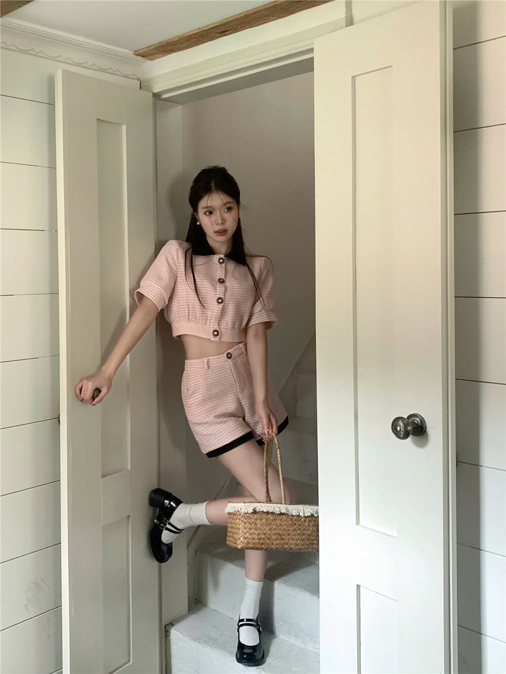小さなフレグランス 2 ピース セット女性衣装ショート ジャケット コート + ショーツ セット甘いツー ピース パンツ セット 大人ガーリー スウィート キュート カジュアル ブルマー mes3882537724
