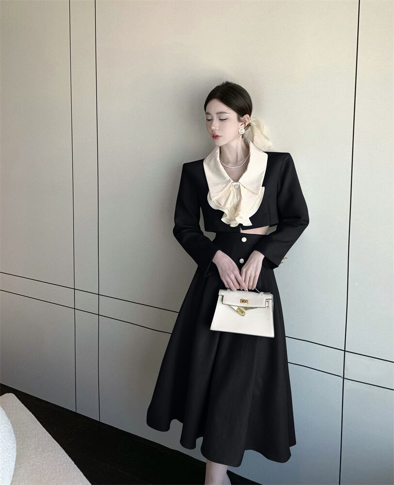 OL スーツ 春 2 点セット女性スウィート コート クロップ トップ + ミディ スカート セット フレンチ ツー ピース衣装 大人ガーリー キュート カジュアル スプリング 春物 mes93364669133