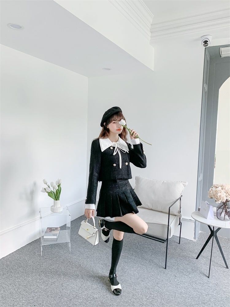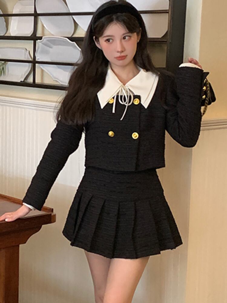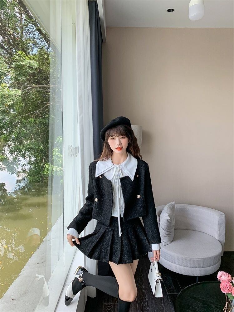 秋のワイナーツーピースセットレディース衣装ツイードジャケットコートプリーツスカートスーツアンサンブルファム 2 個 conjuntos デファルダ オータム 秋物 フェミニン mes21629872613