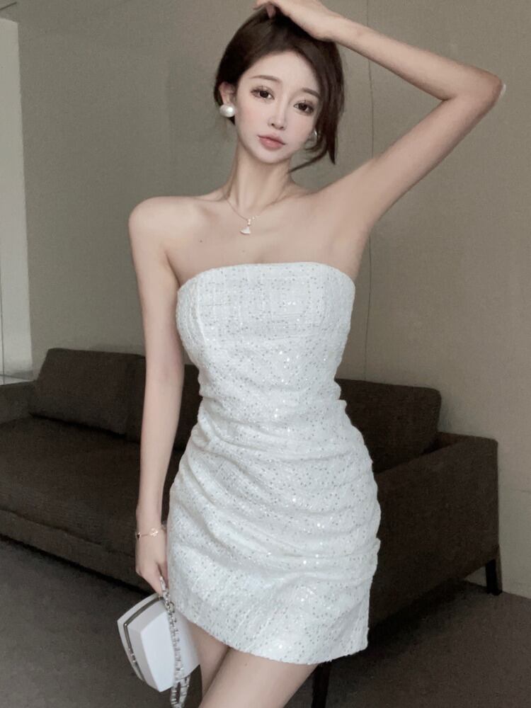 イブニングパーティー Vestido Feminino ショートセクシーなノースリーブストラップレスツイードドレス女性 HotSweet サマードレス 大人ガーリー スウィート キュート カジュアル 夏物 mes16286733941