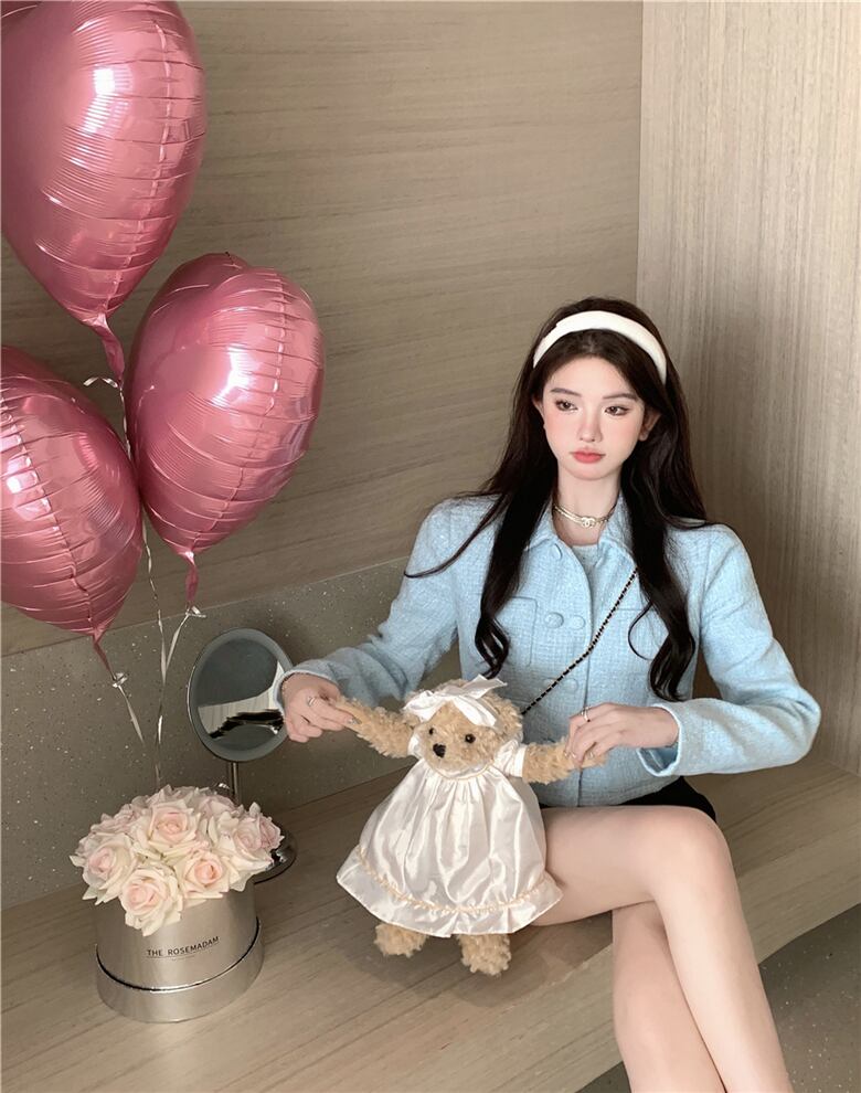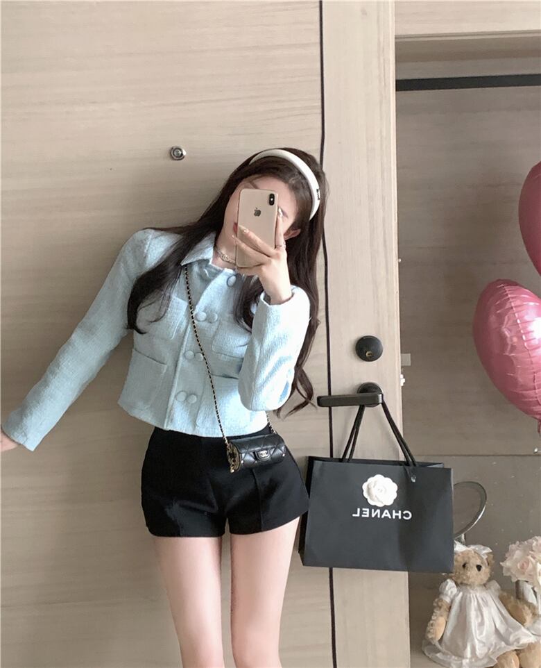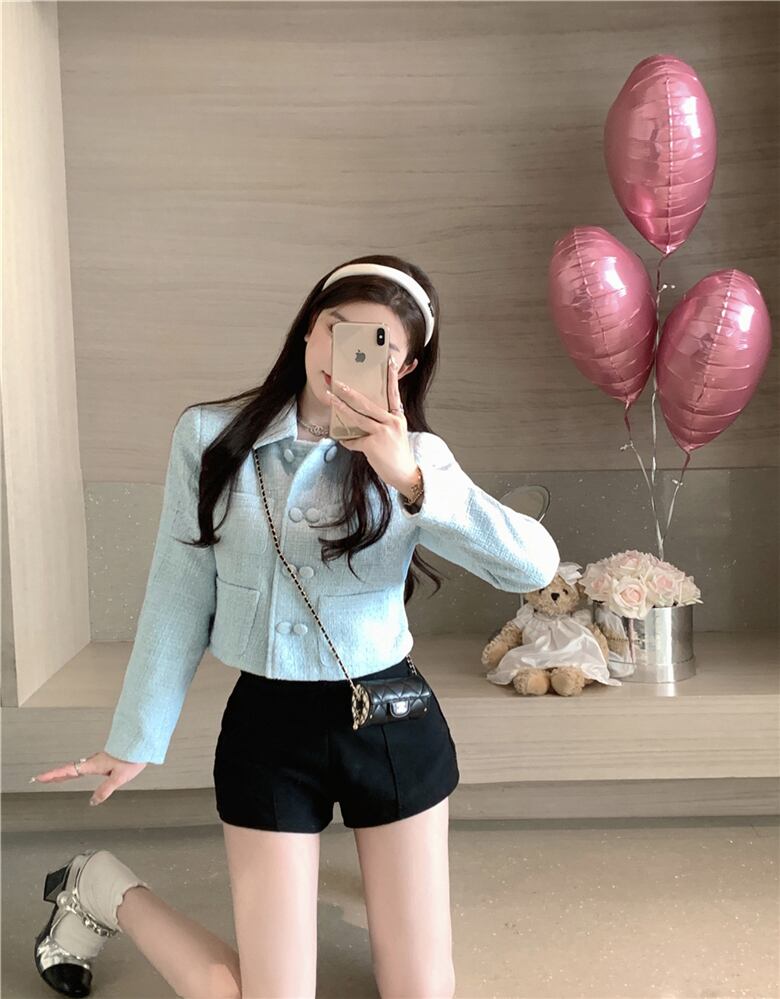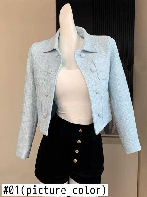 秋冬スウィートスモールフレグランスツイードジャケット女性フライドストリートショートコートダブルブレスト生き抜く 大人ガーリー キュート カジュアル オータム 秋物 ウィンター 冬物 mes56466441184