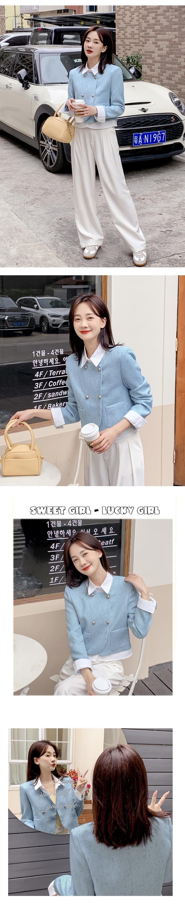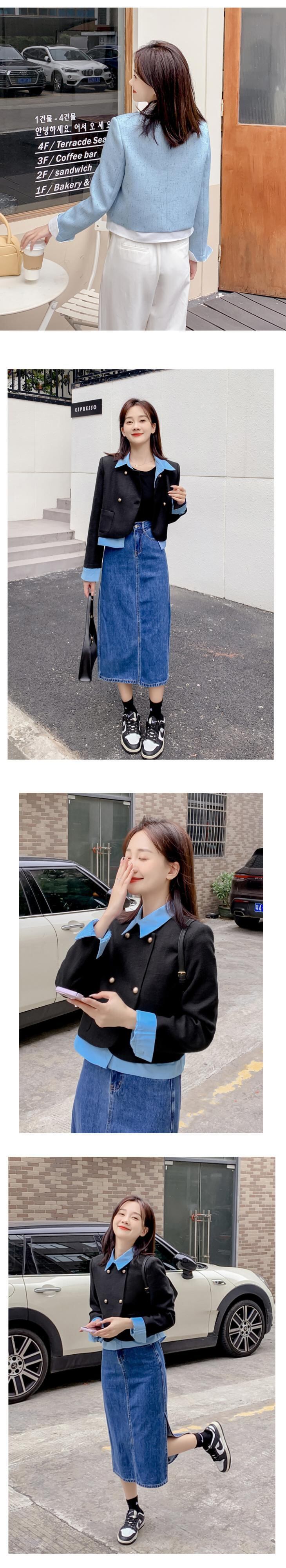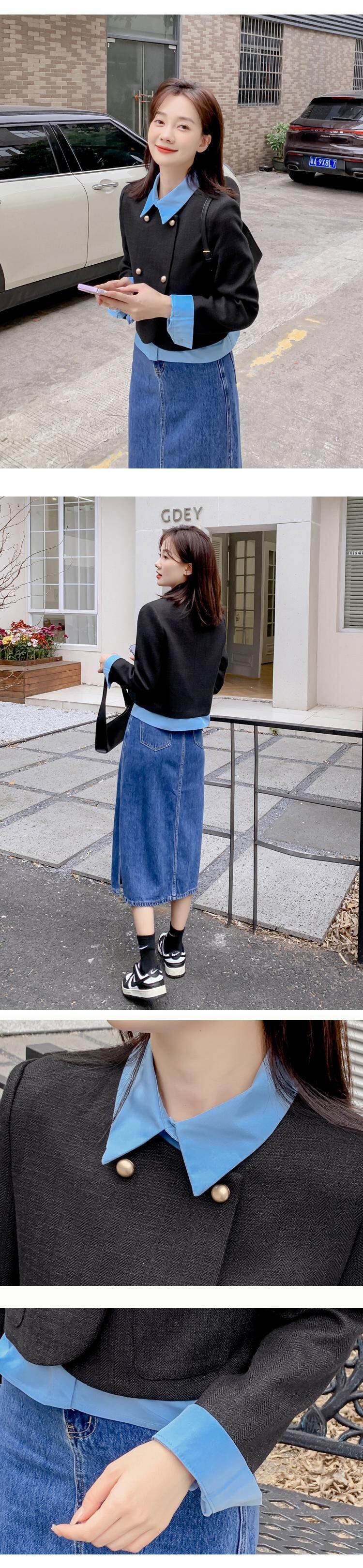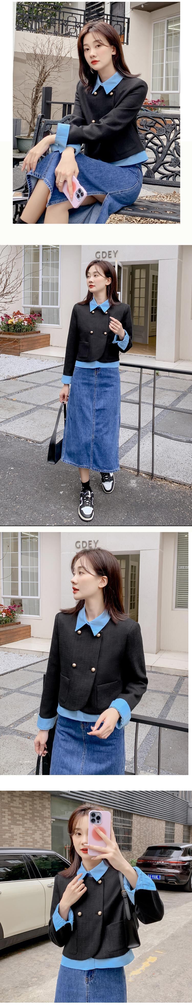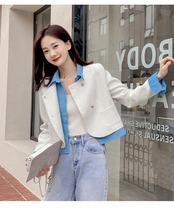 シックな甘いパッチワーク ショート コート春の女性ルーズ アウターウェア ストリート ジャケット クロップ トップ 大人ガーリー スウィート キュート カジュアル スプリング 春物 mes92704781589