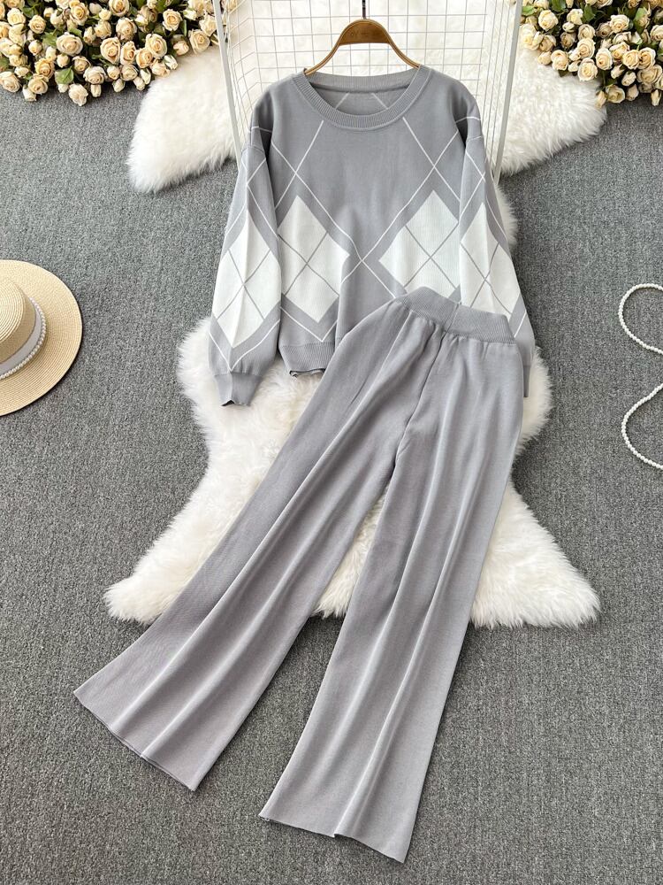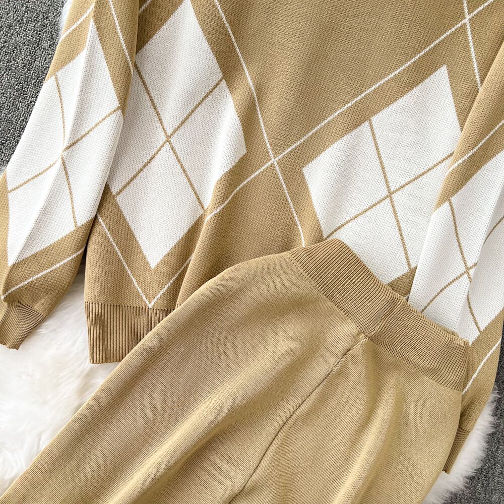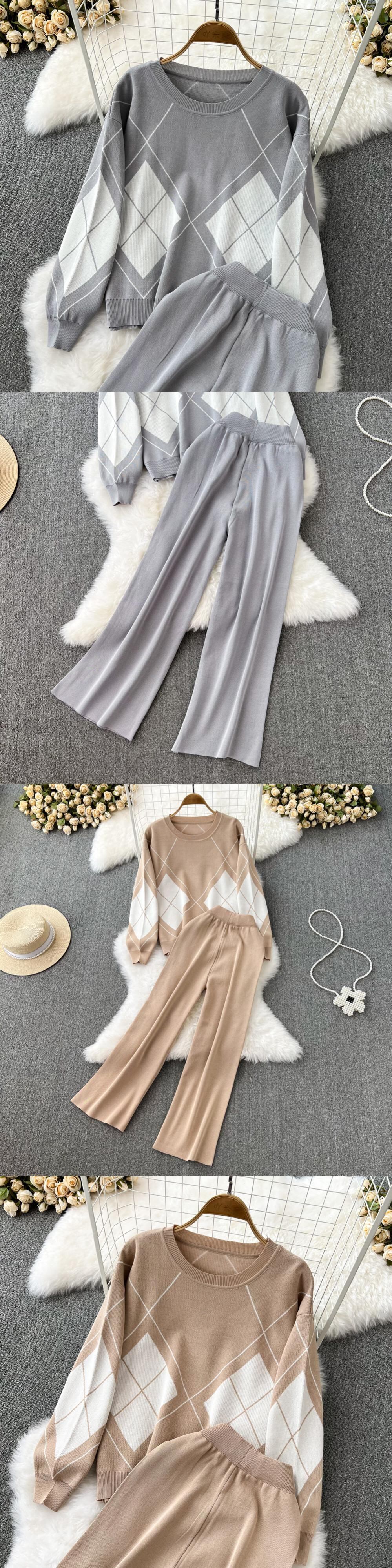 Geomatric トラックスーツ女性ツーピースセット秋冬ニットプルオーバープルオーバー + パンツセットセーター 2 ピーススーツ オータム 秋物 ウィンター 冬物 mes10687089462