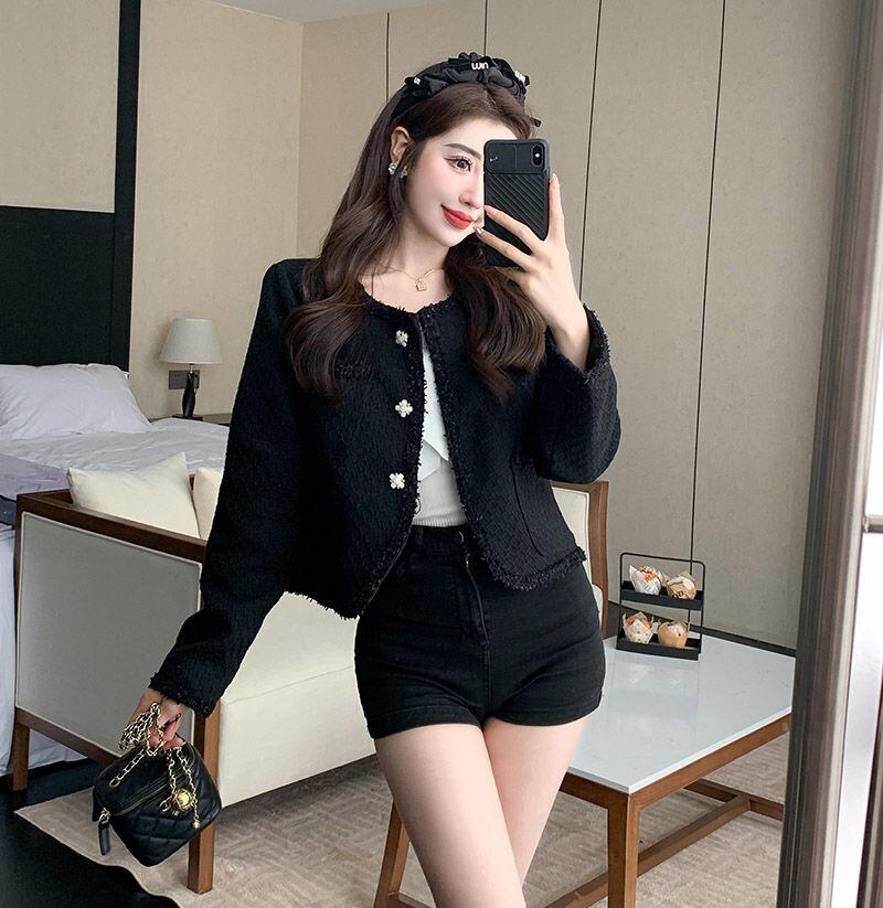 スウィートスモールフレグランスツイードジャケットコート女性秋冬フライドストリートショートコート Casaco 生き抜くトップ 大人ガーリー キュート カジュアル ウィンター 冬物 mes54584536767