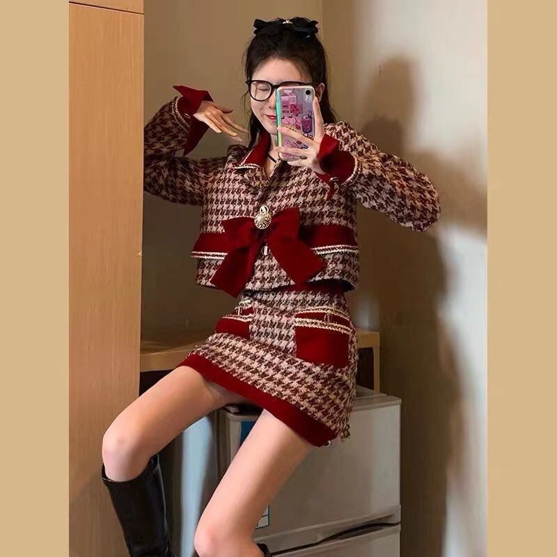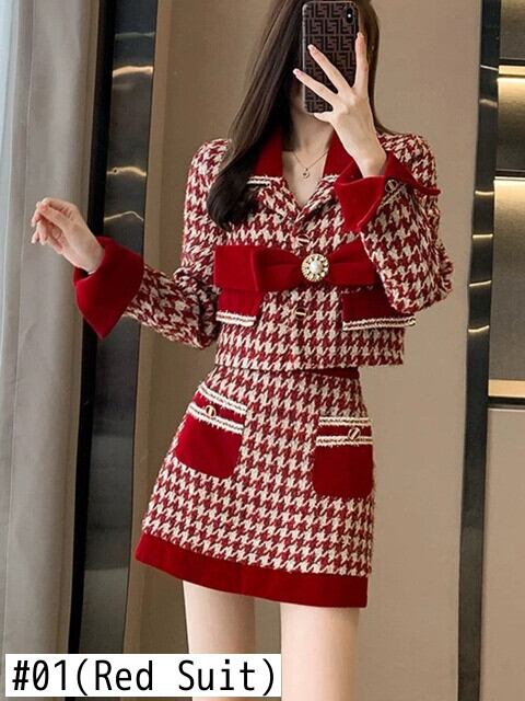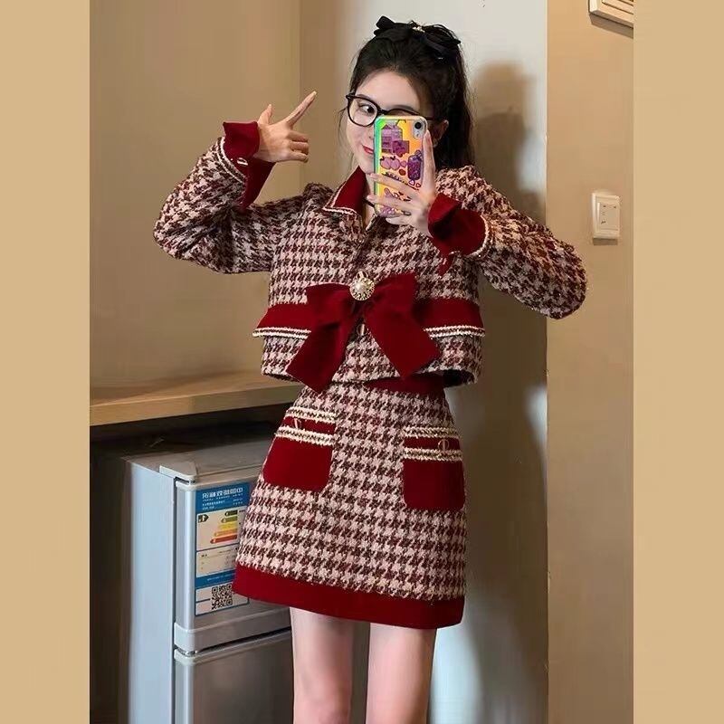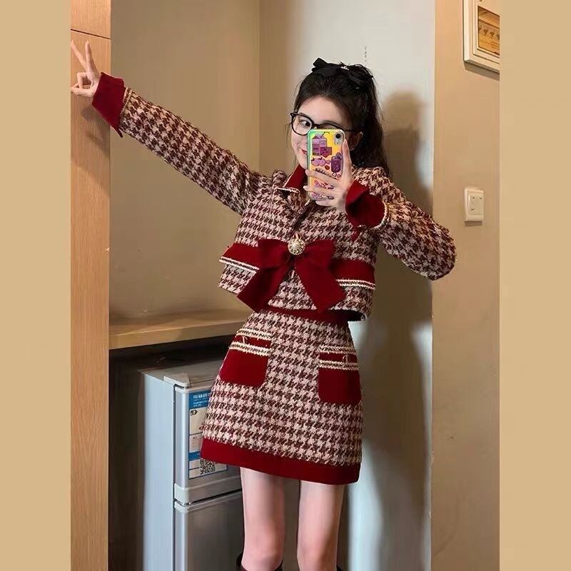 秋のツーピースセットレディース衣装ツイードコートクロップトップ + スカートスーツ conjuntos feminino エレガンテアンサンブルファム 2 個 エレガント オータム 秋物 フェミニン mes30457954676