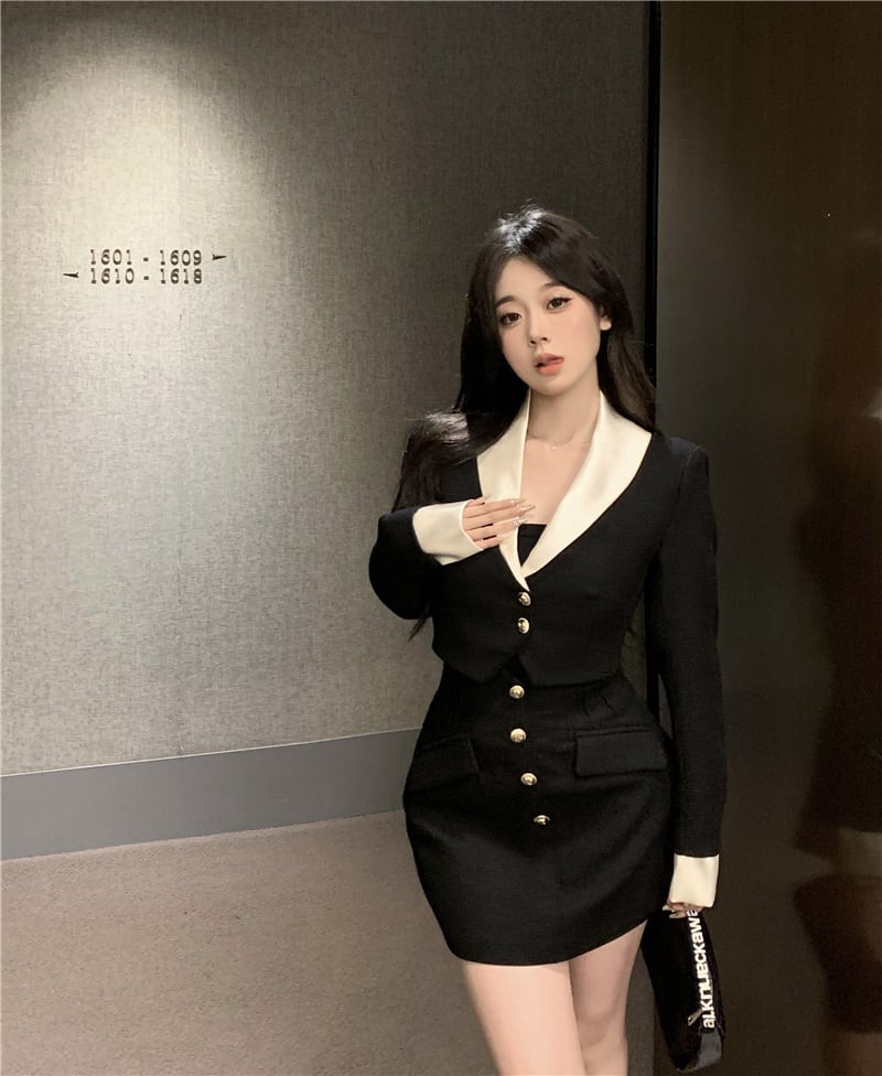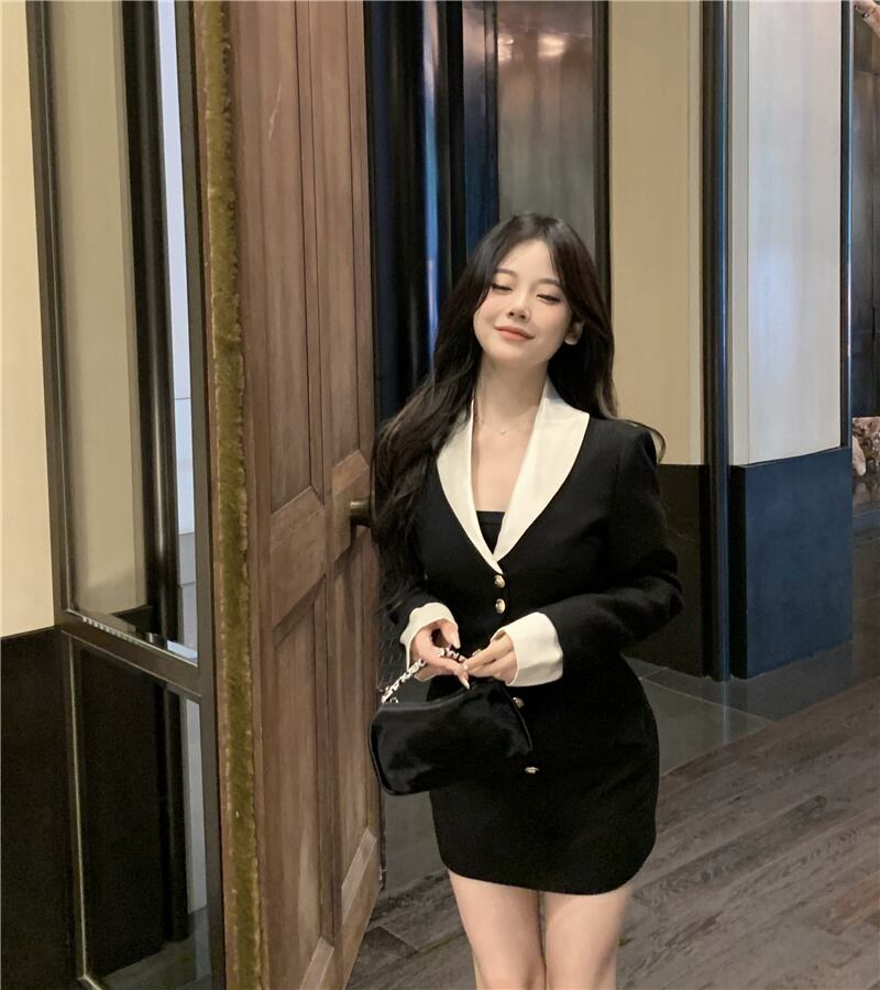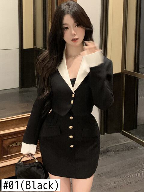 気質 2 点セット女性ショートブレザージャケットコート & ミニスカートスーツオフィスレディ 2 点セット 会社 学校 通勤や通学にも mes29533056037