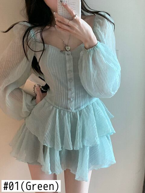 春シフォンケーキドレス女性長袖スリムウエストセクシーなビーチホリデードレスローブ Vestidos ロング スプリング 春物 mes66489147167