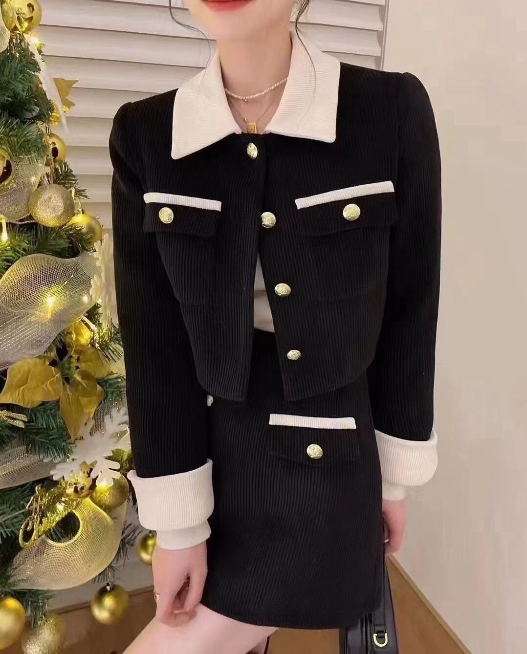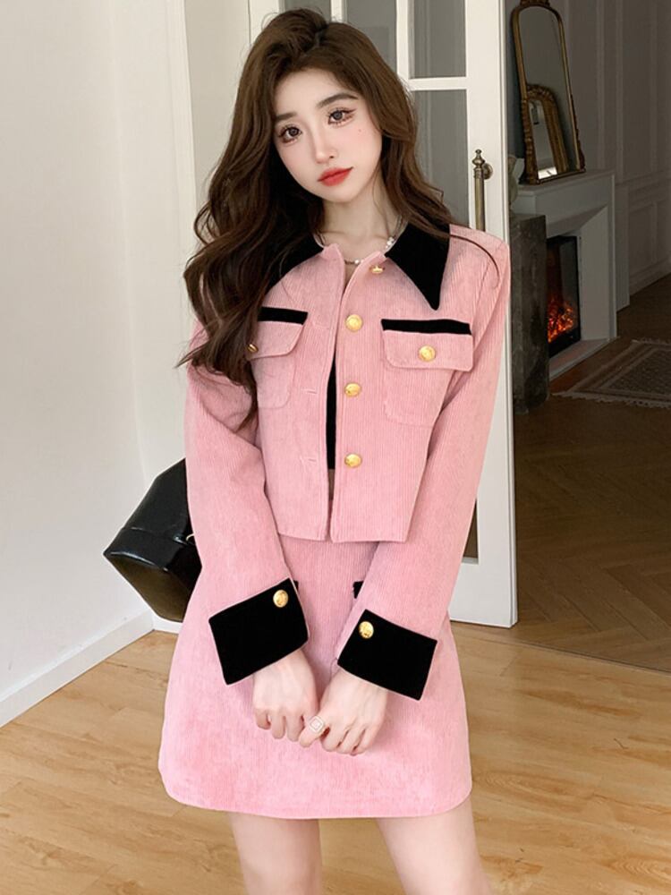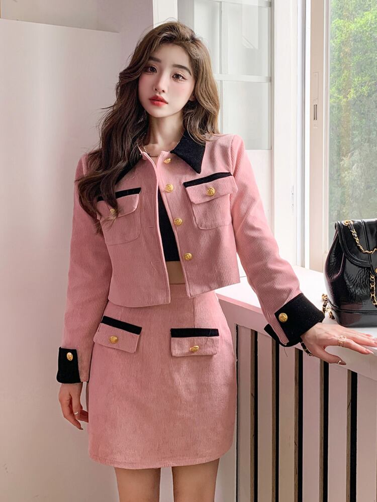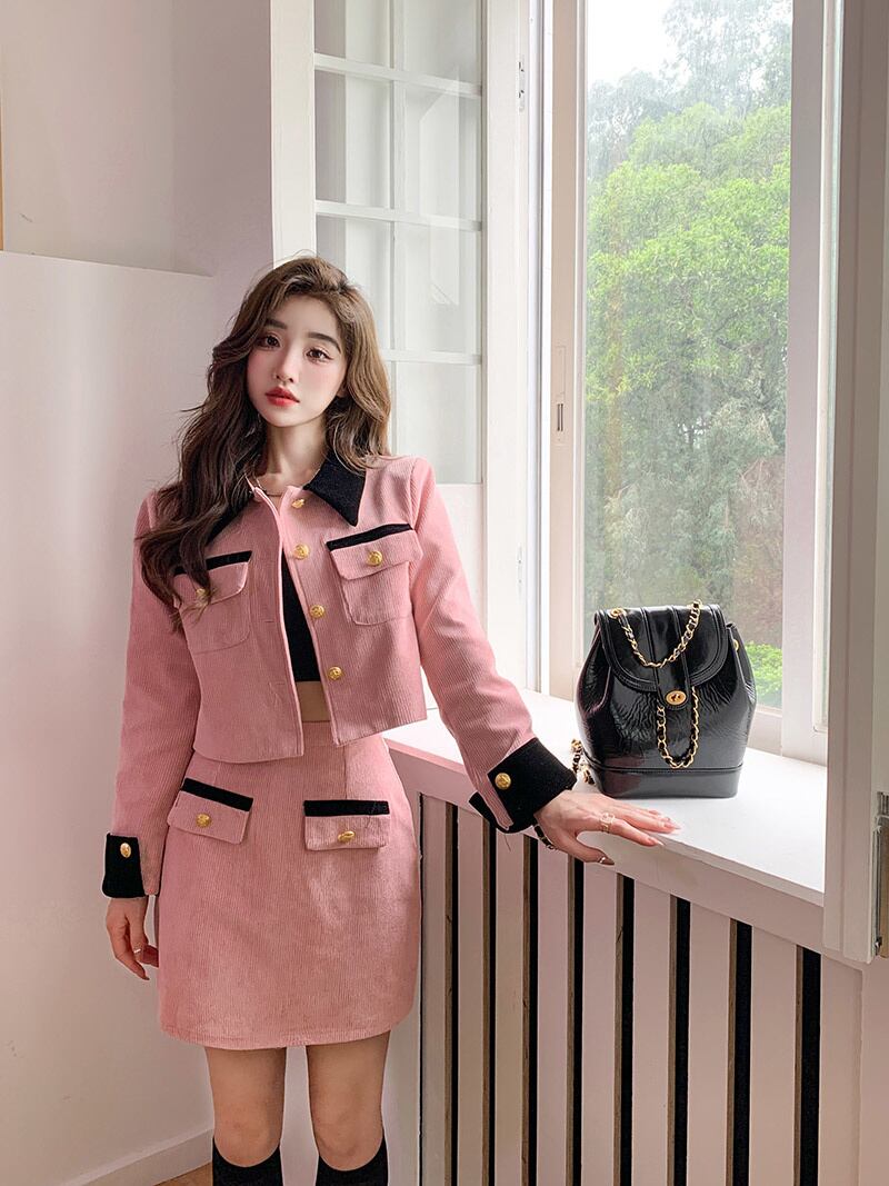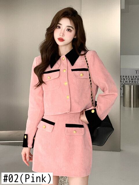 小さな香り甘い 2 点セット女性 Outifit フレンチ ジャケット コート + スカート セット フレンチ コーデュロイ ツー ピース スーツ 大人ガーリー スウィート キュート カジュアル mes19170902094