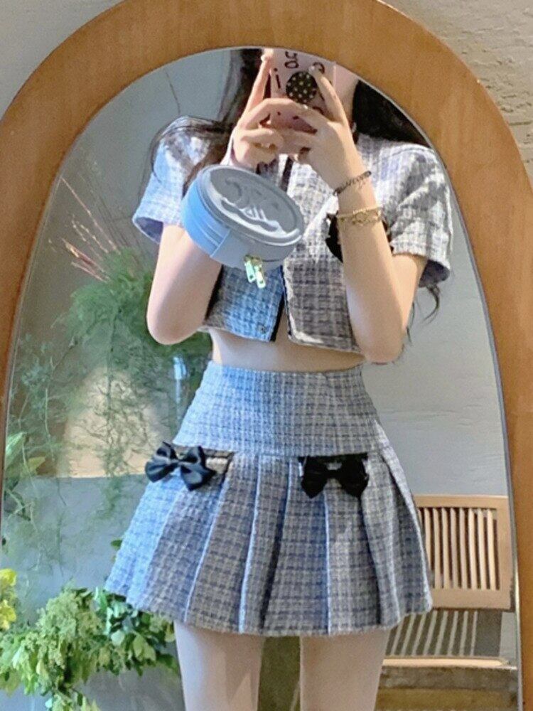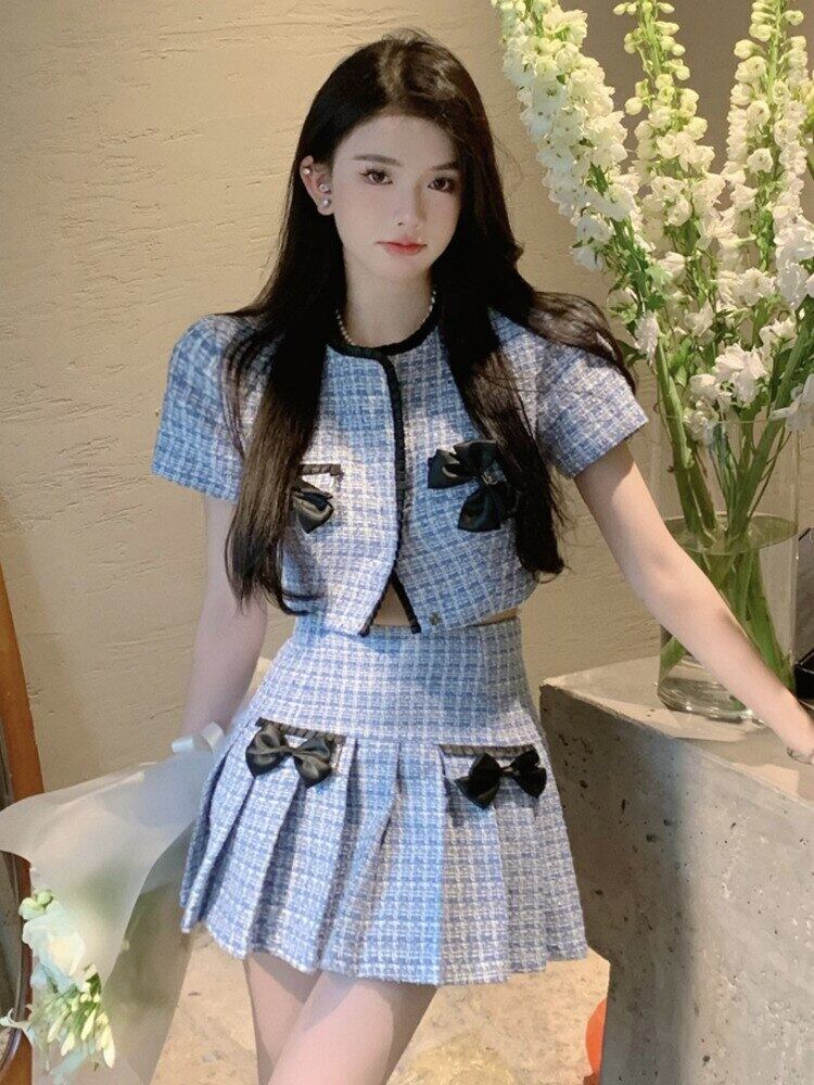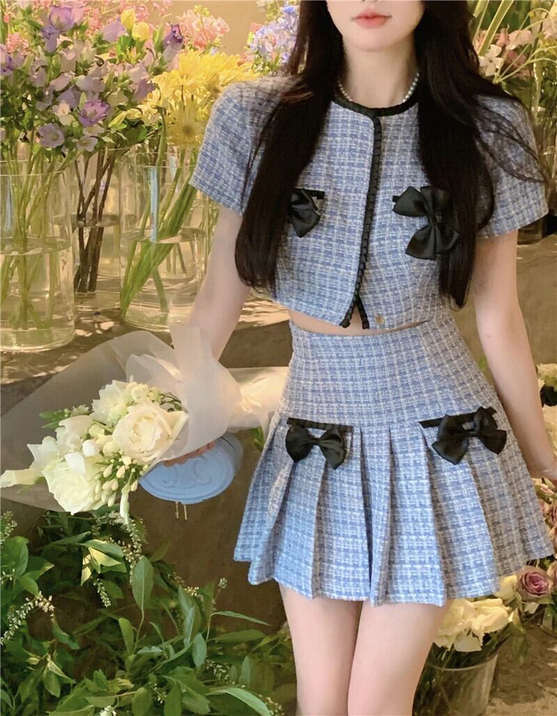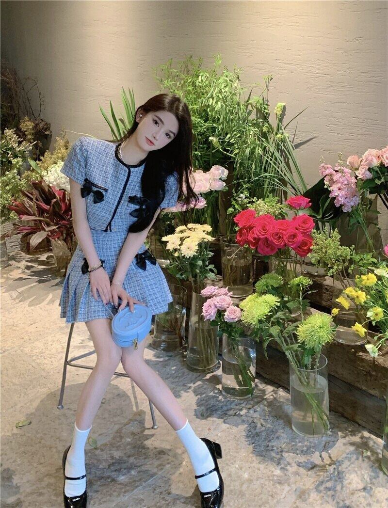 夏の甘いツーピースセット女性ジャケットコート + プリーツスカート小さな香り 2 点セット女性の衣装 大人ガーリー スウィート キュート カジュアル サマー 夏物 mes45200743065