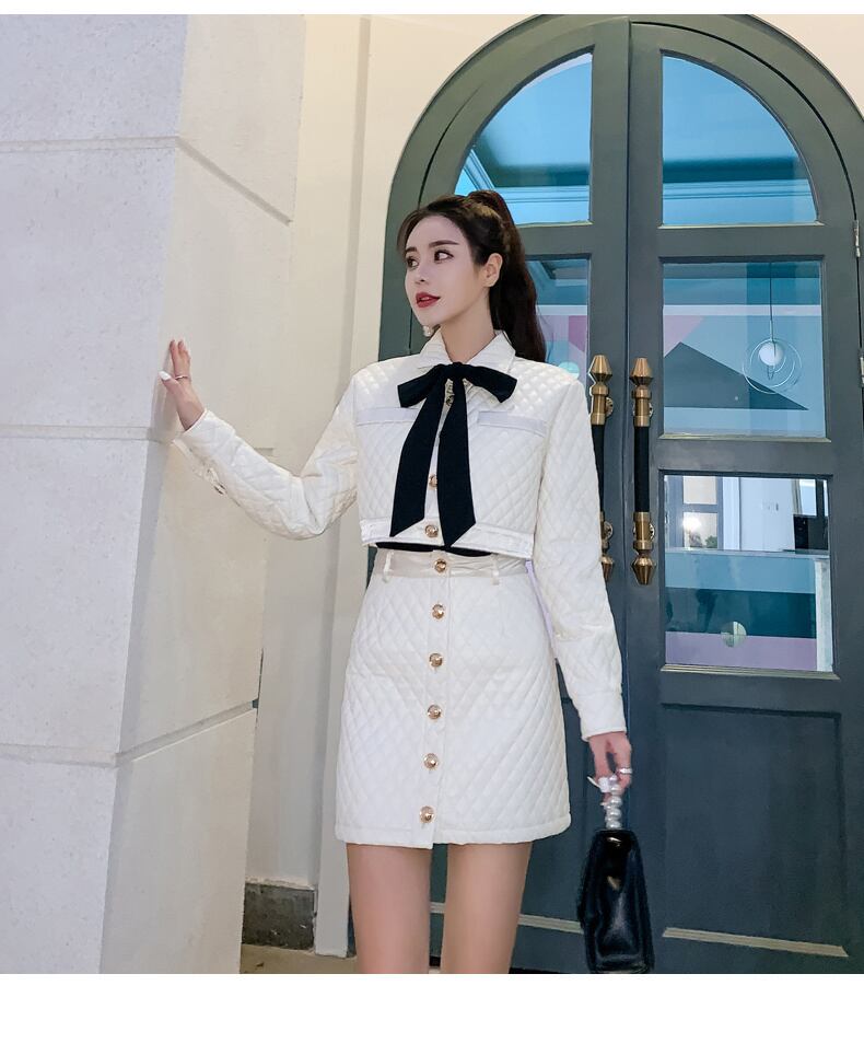 秋冬パーカー 2 点セット女性クロップトップ弓ショートパーカージャケットコート + ウエストスカートセット リボン オータム 秋物 ウィンター 冬物 mes97208807883