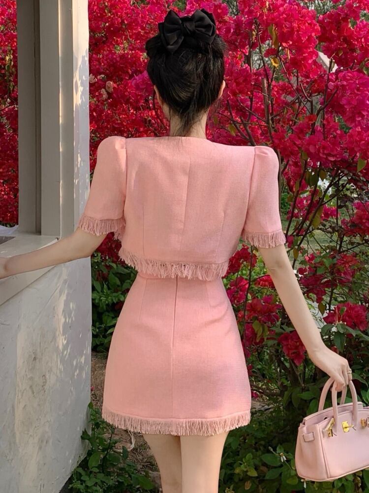 小さなフレグランス 2 点セット女性 Tels ショート ジャケット コート + ミニ スカート スーツ夏甘い 2 点セット 大人ガーリー スウィート キュート カジュアル サマー 夏物 mes25516985168
