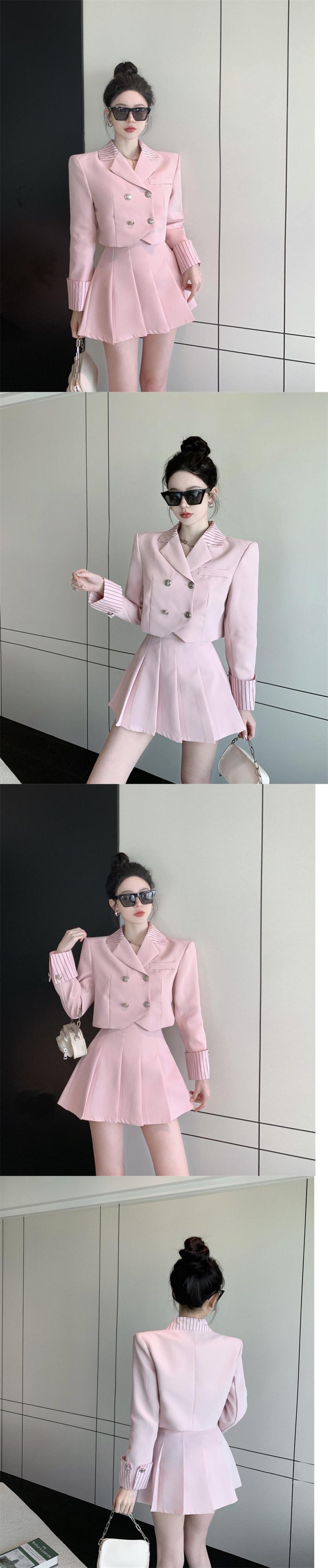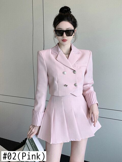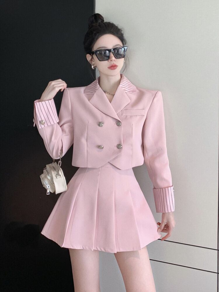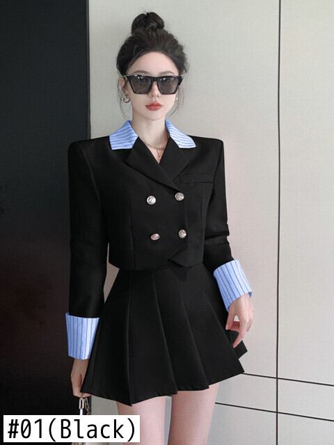 オフィスレディ 2 点セット女性衣装ブレザーコートクロップトップ + スカートセット甘いツーピーススーツ 大人ガーリー スウィート キュート カジュアル 会社 学校 通勤や通学にも mes75070509933